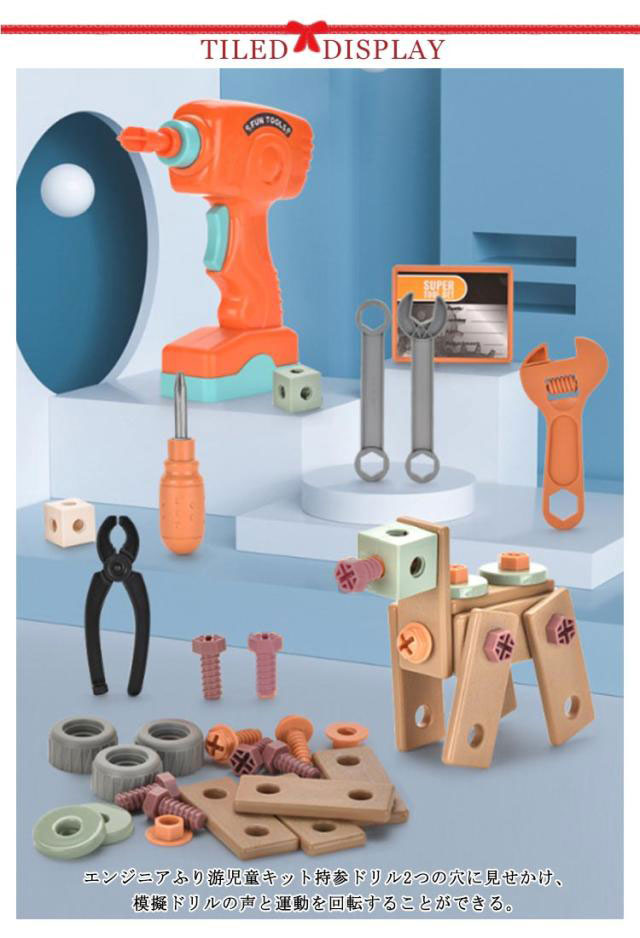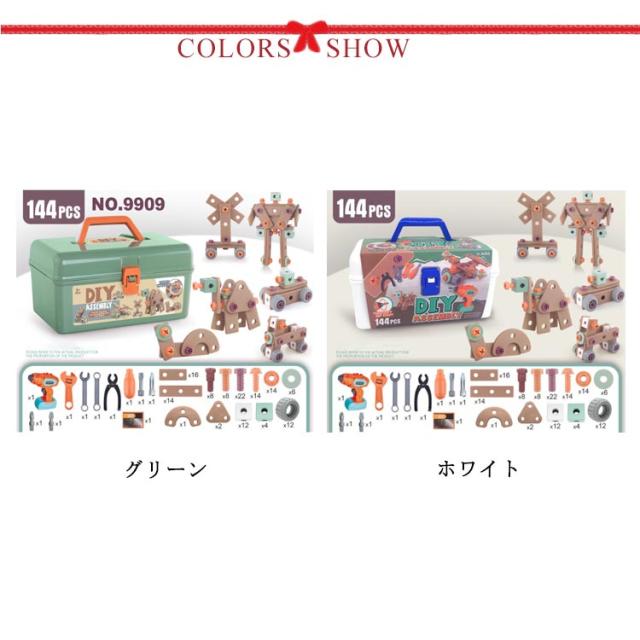 | 144PCS モンテッソーリ教育 大工さんセット 安全で、丈夫で、無毒のABSプラスチック材質を採用して、縁は丸くて滑らかです。 エンジニアふり游児童キット持参ドリル2つの穴に見せかけ、模擬ドリルの声と運動を回転することができる。 ナットとボルトを組み合わせて、子供たちの想像力でいろいろな仕組みを作ることができます。 収納ボックス付き、持ち運びに便利。おもちゃを簡単に持ち運びでき、どこへでも遊びに行けるお友達と一緒に遊び、思い出に残る楽しい時間を過ごす♪ | |