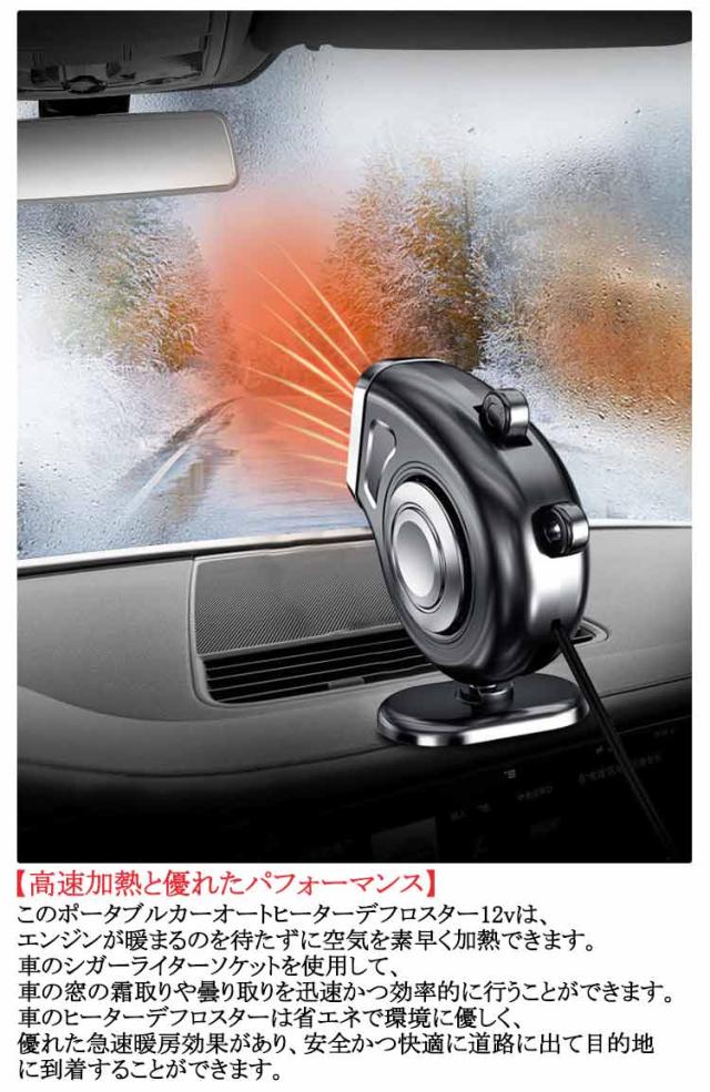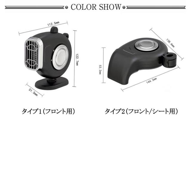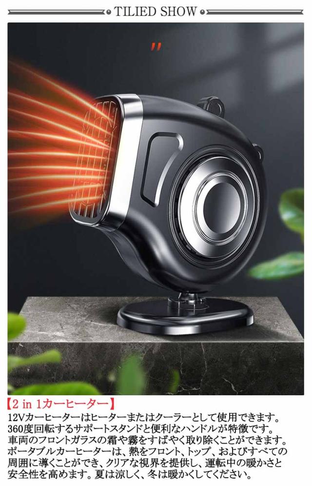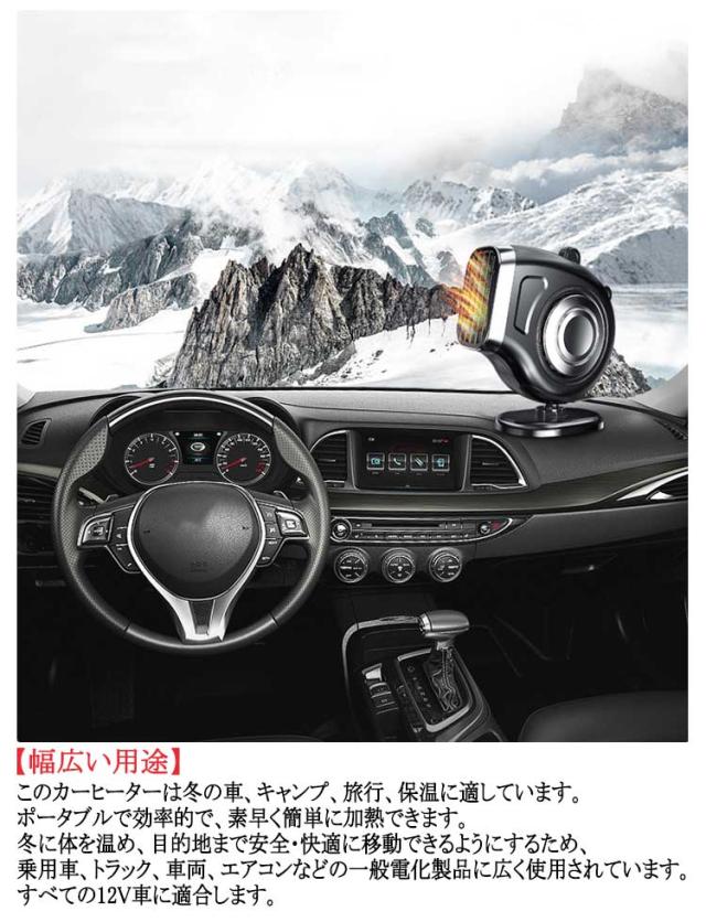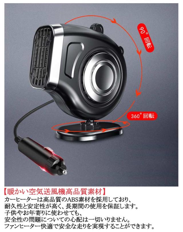 | 2type フロント/シート/リアの暖房に 【2 in 1カーヒーター】:12Vカーヒーターはヒーターまたはクーラーとして使用できます。360度回転するサポートスタンドと便利なハンドルが特徴です。車両のフロントガラスの霜や霧をすばやく取り除くことができます。ポータブルカーヒーターは、熱をフロント、トップ、およびすべての周囲に導くことができ、クリアな視界を提供し、運転中の暖かさと安全性を高めます。夏は涼しく、冬は暖かくしてください。 【暖かい空気送風機高品質素材】カーヒーターは高品質のABS素材を採用しており、耐久性と安定性が高く、長期間の使用を保証します。子供やお年寄りに使わせても、安全性の問題についての心配は一切いりません。ファンヒーター快適で安全な走りを実現することができます。 【幅広い用途】このカーヒーターは冬の車、キャンプ、旅行、保温に適しています。 ポータブルで効率的で、素早く簡単に加熱できます。 冬に体を温め、目的地まで安全・快適に移動できるようにするため、乗用車、トラック、車両、エアコンなどの一般電化製品に広く使用されています。 すべての12V車に適合します。 【高速加熱と優れたパフォーマンス】このポータブルカーオートヒーターデフロスター12vは、エンジンが暖まるのを待たずに空気を素早く加熱できます。 車のシガーライターソケットを使用して、車の窓の霜取りや曇り取りを迅速かつ効率的に行うことができます。 車のヒーターデフロスターは省エネで環境に優しく、優れた急速暖房効果があり、安全かつ快適に道路に出て目的地に到着することができます。 【安全運転保障】 ヒューズが内蔵して、危険な時には自動的に断電し、安全を保護します。ケーブルは高品質純銅製で、長期間使用に耐える最大限の強度と耐久性を確保します。長旅やキャンプに最適です。 | |