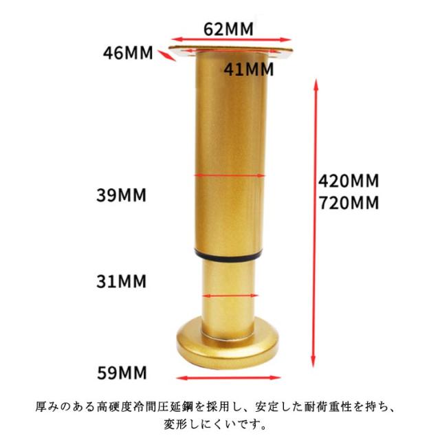 | 4.2-12cm 調節可能な家具脚 4本セット cmから42cmまで調整可能なテーブルの脚で、あらゆる家具に対応します。 回転させるだけで高さを調節し、凹凸がある地面に合わせて自由に高さ調整します。 厚みのある高硬度冷間圧延鋼を採用し、安定した耐荷重性を持ち、変形しにくいです。 取り付け板に4つの穴があらかじめ用意されて、ねじを締めるだけで、机の脚を取り付けられます。 DIY家具、テーブル、バスルームキャビネット、テレビスタンド、ベッド、ソファー、キャビネット、椅子脚、ティーテーブル、ナイトテーブルなど、幅広い用途に使用できます。 | |