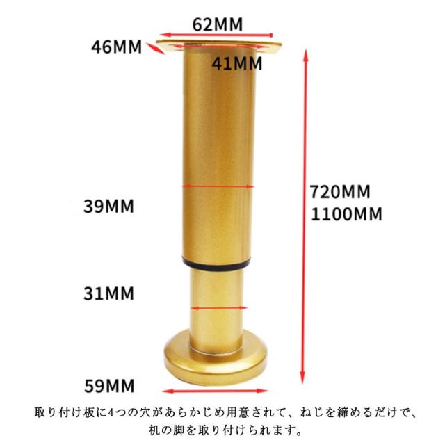 テーブル 脚 4本セット 4脚セット テーブル 脚 パーツ アイアンレッグ 家具 高さ調整 DIY ちゃぶ台 デスク 脚 diy ローテーブル 脚 ダイニングテーブル 脚 パーツ ベッド ソファー 家具の脚 伸縮式 スチール 鉄脚 脚上げ 交換 継脚 家具脚 4本組 4.2cm~11cm