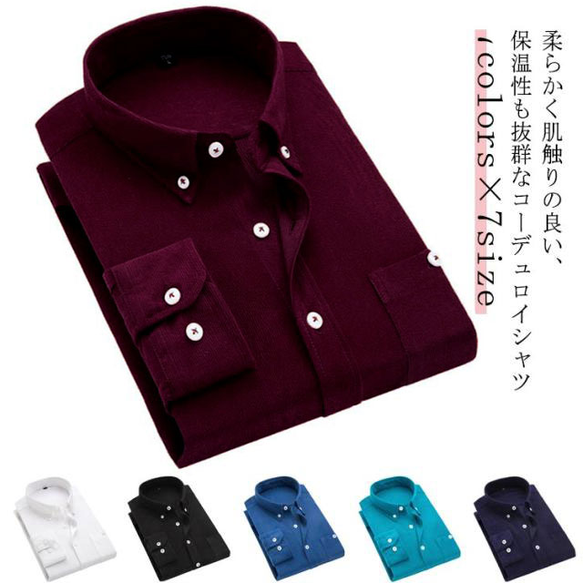 送料無料 コーデュロイシャツ メンズ 長袖 シャツ 暖かい 秋冬 Yシャツ ボタンダウン 無地 ワイシャツ カジュアルシャツ コーデュロイ シャツ ビジネスシャツ インナー シャツジャケット シンプル 大きいサイズ 防寒 保温 紳士仕事