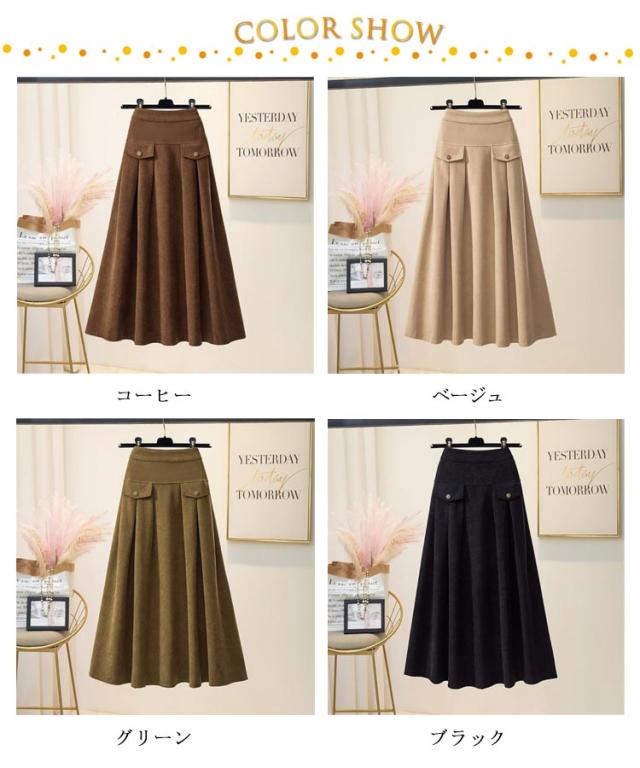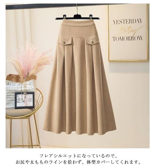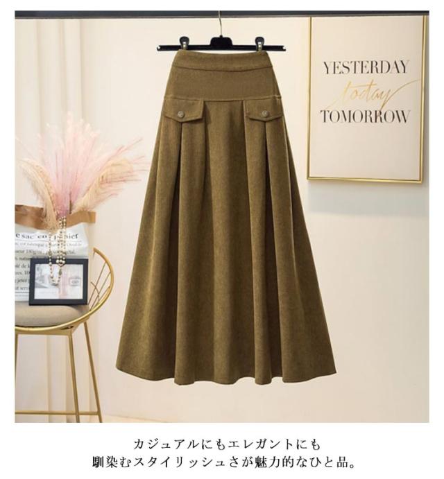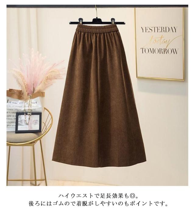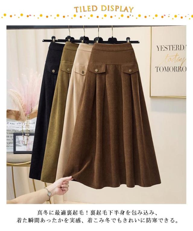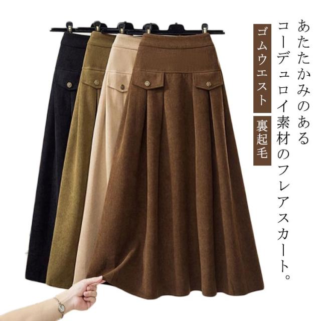 コーデュロイ スカート 裏起毛 ミモレ丈 フレアスカート Aライン レディース 秋冬 厚手 コーデュロイスカート aラインスカート ゴム ロングスカート ハイウエスト レトロ 大きいサイズ 通勤 通学 大人 カジュアル きれいめ 50代 40代 30代 20代 無地 【送料無料】