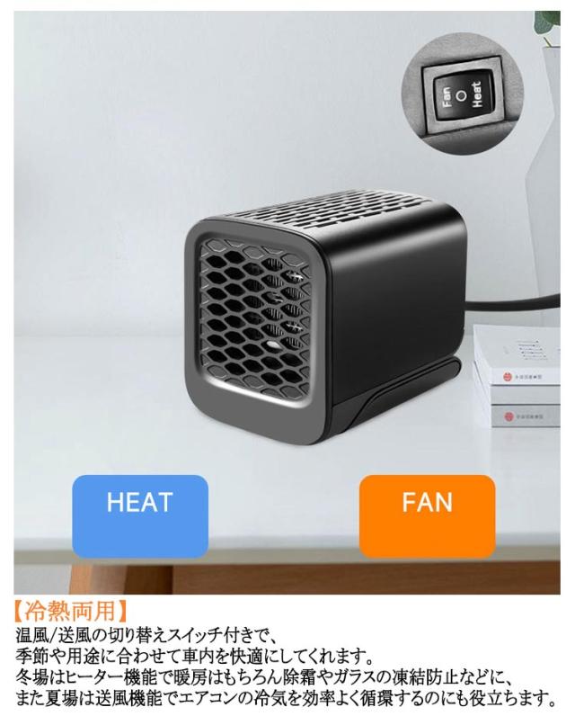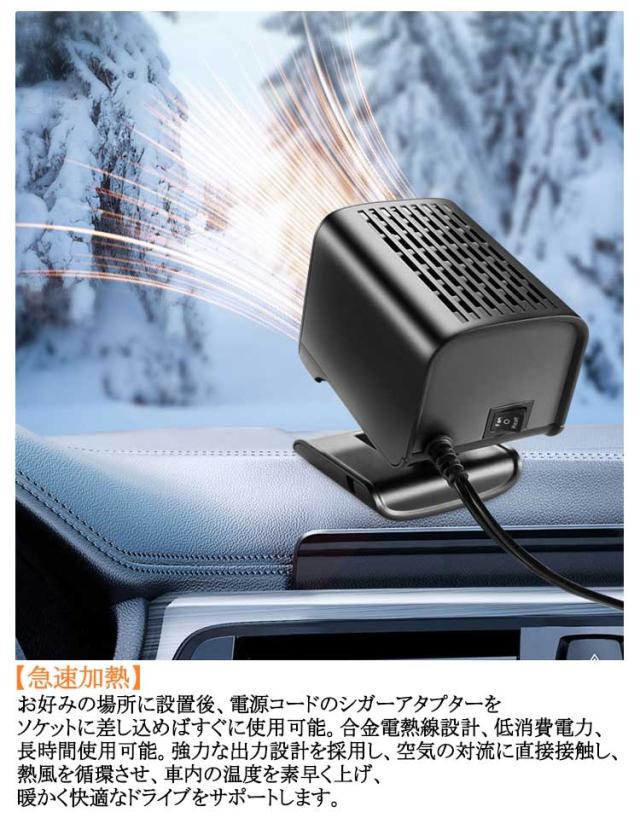 車載暖房機 暖房補助 360°回転 車内ヒーター 車載ファンヒーター ガラス凍結防止 温風/送風切替 シガーソケット差込 冷熱両用 折りたたみ式 霜取り 車載ファンヒーター ポータブル ホットファン 凍結 車載用 曇り防止 結露対策 防寒 温風機 角度調節 冬対策
