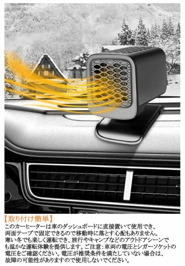 | 【高品質】この車載ファンヒーターは高品質のABS素材で作られており、耐久性ありで、壊れにくいです。ケーブルの長さは約140CMで、耐熱素材を採用しており、太くて長い銅線で作られており、断線しにくいです。お客様に快適で安全な運転体験を提供します。 【角度調整可能】角度調整が上下90°、左右360°と自由自在にお好みの角度に調整することができるので、車内の各所へ効率的に温風を届けることができます。 【冷熱両用】温風/送風の切り替えスイッチ付きで、季節や用途に合わせて車内を快適にしてくれます。冬場はヒーター機能で暖房はもちろん除霜やガラスの凍結防止などに、また夏場は送風機能でエアコンの冷気を効率よく循環するのにも役立ちます。 【急速加熱】お好みの場所に設置後、電源コードのシガーアタプターをソケットに差し込めばすぐに使用可能。合金電熱線設計、低消費電力、長時間使用可能。強力な出力設計を採用し、空気の対流に直接接触し、熱風を循環させ、車内の温度を素早く上げ、暖かく快適なドライブをサポートします。 【取り付け簡単】このカーヒーターは車のダッシュボードに直接置いて使用でき、両面テープで固定できるので移動時に落とす心配もありません。寒い冬でも楽しく運転でき、旅行やキャンプなどのアウトドアシーンでも温かな運転体験を提供します。ご注意:車両の電圧とシガーソケットの電圧をご確認ください。電圧が推奨条件を満たしていない場合は、故障の可能性がありますので使用しないでください。 | |