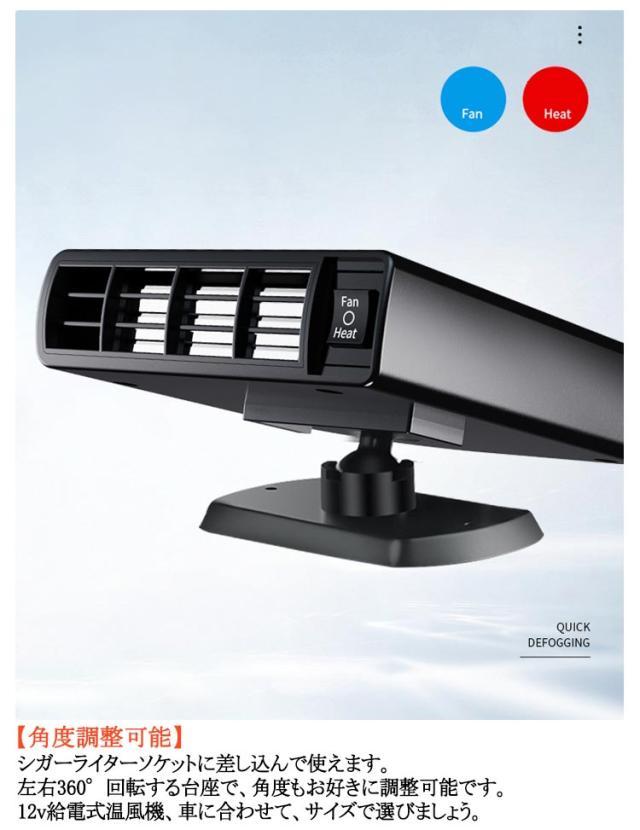カーヒーターファン シガーソケット 車中泊 コンパクト 暖房 温風 車載 車載ファンヒーター 取付簡単 12V/150W 車用小型ヒーター ガラス除霜 上下 左右回転 急速加熱 除霜/除霧/保暖 曇り止め 自動車