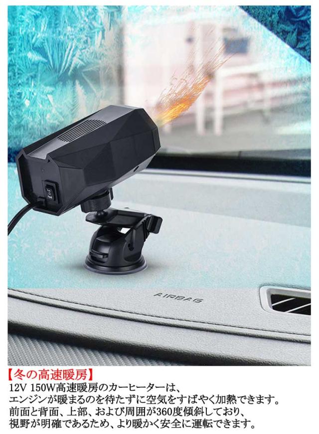 | 【プレミアム素材】耐熱ABS素材で、ケーブルは太くて長い銅線で折れにくいです。使用中に熱くならず、車のバッテリーを損傷することもありません。それはあなたに快適で安全な運転を与えることができます。 【カップ型カーヒーター】このカップ型カーヒーターは、デフロスター・デフォギング、空気清浄だけでなく、自然風や温風機能にも適しています。スイッチを交換するだけで、必要に応じて、暖風または自然風がすぐに現れます。 【冬の高速暖房】12V 150W高速暖房のカーヒーターは、エンジンが暖まるのを待たずに空気をすばやく加熱できます。前面と背面、上部、および周囲が360度傾斜しており、視野が明確であるため、より暖かく安全に運転できます。 【インテリジェントデザイン】コンパクトなサイズで、持ち運びができ、設置が便利です。ロータリーホルダーは、自由に調整できるように設計されており、便利で実用的です。車のベントのように調整や方向付けが簡単なロータリーホルダーが付属しているので、お好みの角度に調整できます。 【多用途&注意】ヒーターは、車、風防、サイドウィンドウ、リアウィンドウの霜、霧、霧を素早くきれいにするように設計されており、明確な運転視界を提供し、この寒い冬の暖かい運転を楽しむことができます。(パワー150W以下の車種には不対応) | |