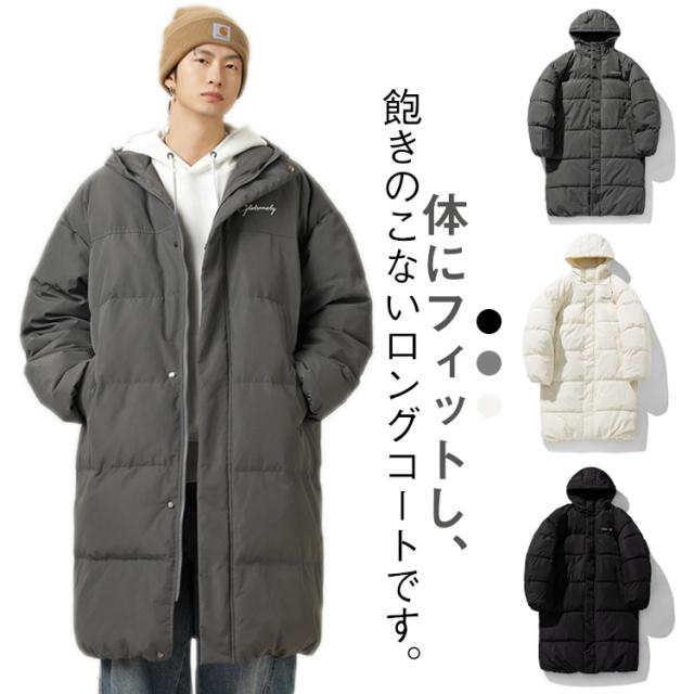 秋冬 防風 防寒 アウター 厚手 中綿ジャケット フート付き ベンチコート メンズ 大きいサイズ 保温 ロングコート ゆったり 暖かい 中綿コート フェイクダウンコート 着心地いい あったか 通勤