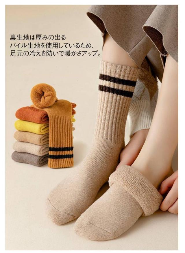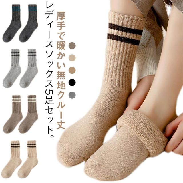 綿 クルー丈 5足セット 暖かい レディース 厚手 無地 靴下 ソックス おしゃれ カジュアルソックス 極厚 保温 伸縮性 冷え対策 5足セット 冬用 冷えとり 保温 防寒 レディースソックス 厚手靴下 防寒