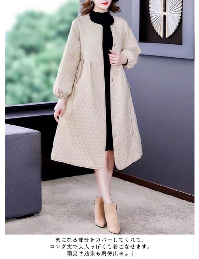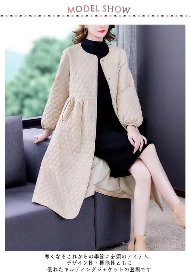 バルーンスリーブ 中綿コート 長袖 あったか レディース L ブルゾン ノーカラー 暖かい ライトアウター キルティングジャケット 秋冬 羽織り ウター キルティングコート 防寒 Aライン 大きいサイズ S M XL バルーンスリーブ 2XL 3XL