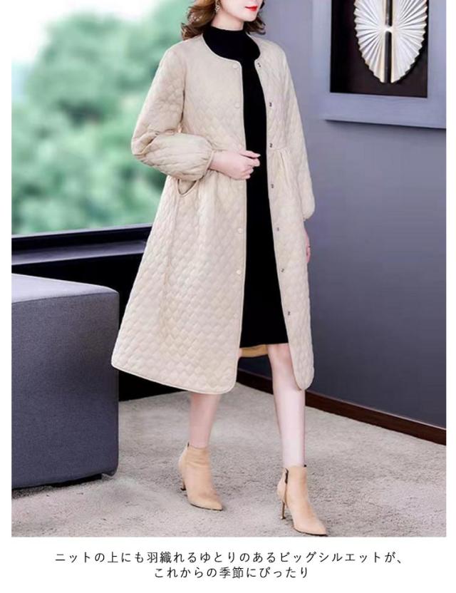| 落ち着いた大人の印象!丸みあるシルエットの中綿ジャケット。 寒くなるこれからの季節に必須のアイテム、デザイン性・機能性ともに優れたキルティングジャケットの登場です。 気になる部分をカバーしてくれて、ロング丈で大人っぽくも着こなせます。細見せ効果も期待出来ます。 ニットの上にも羽織れるゆとりのあるビッグシルエットが、これからの季節にぴったり。 ノーカラーで大人っぽくスッキリ着られ、タートルネックやマフラーとの相性も抜群。 | |