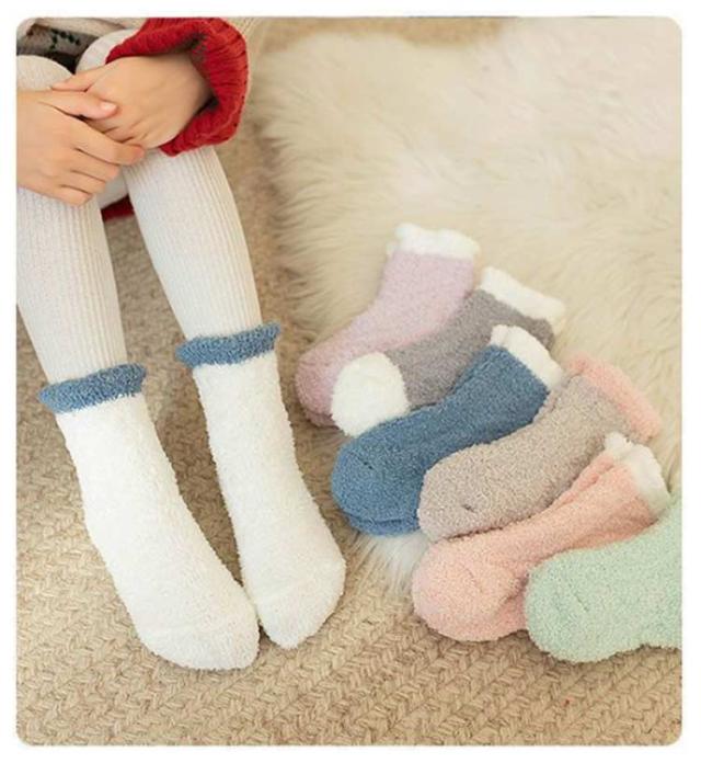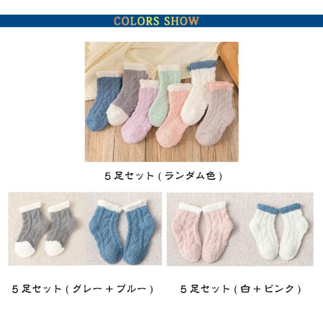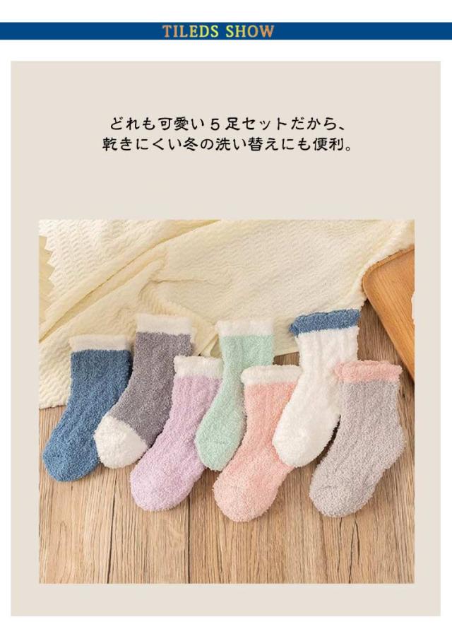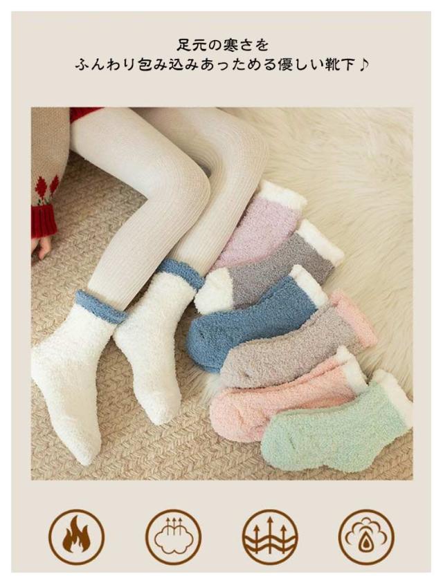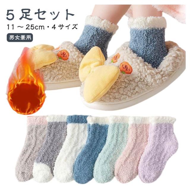 ルームソックス 靴下 冷え対策 ふわふわ キッズ あったか靴下 やさしい肌ざわりで防寒 もこもこ 暖かい 11-25cm 防寒 男女兼用 5足セット 女の子 5足セット ベビー 小学生 中学生 子供 レディース おしゃれ クルー丈ルームソックス