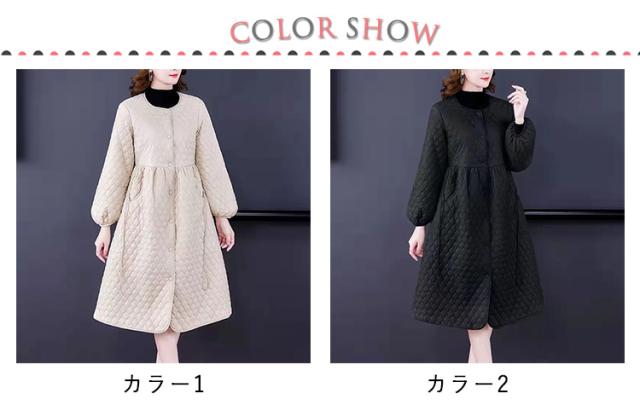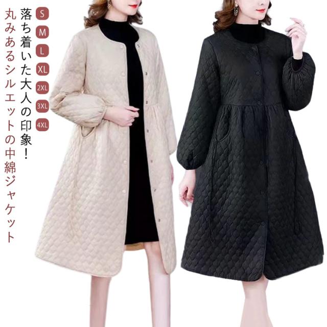 バルーンスリーブ ウター レディース バルーンスリーブ 中綿コート ノーカラー キルティングコート 秋冬 ロング ライトアウター キルティングジャケット 長袖 防寒 あったか ブルゾン 暖かい Aライン 大きいサイズ S M L XL 2XL 3XL