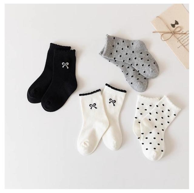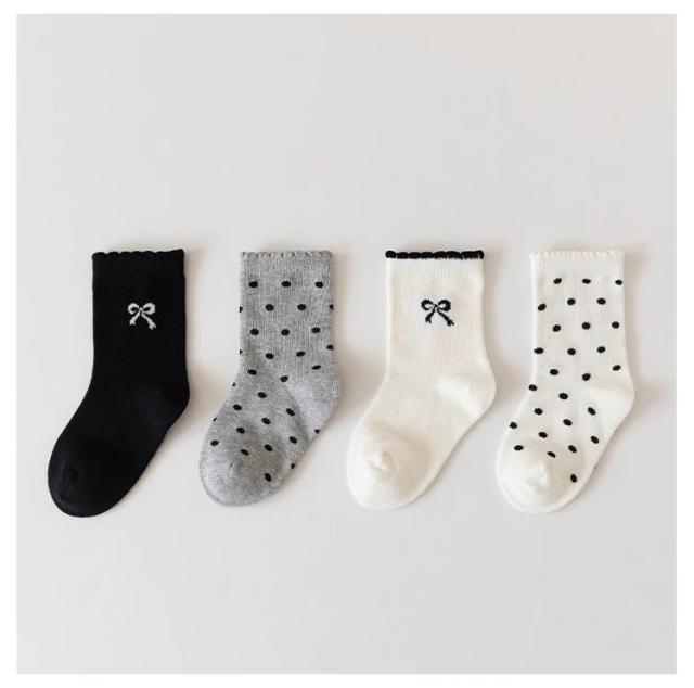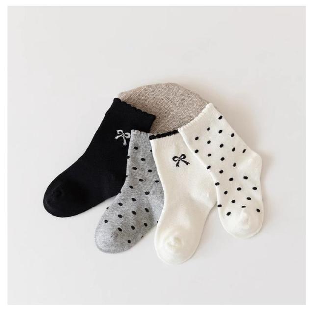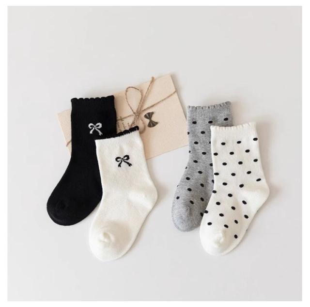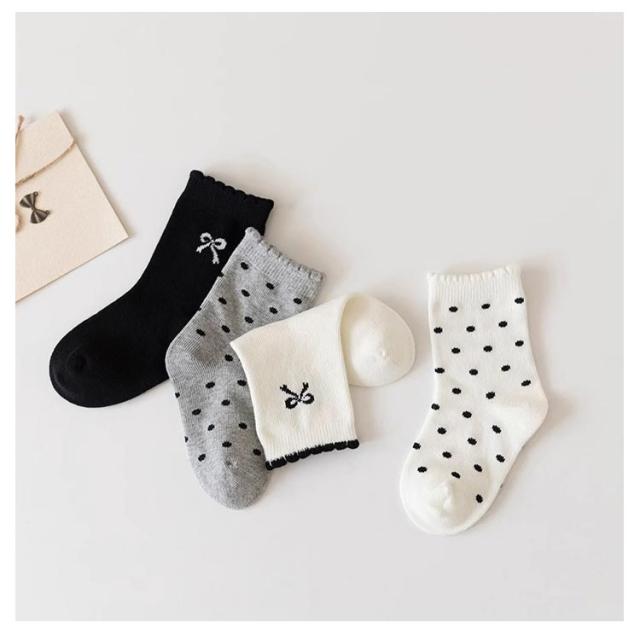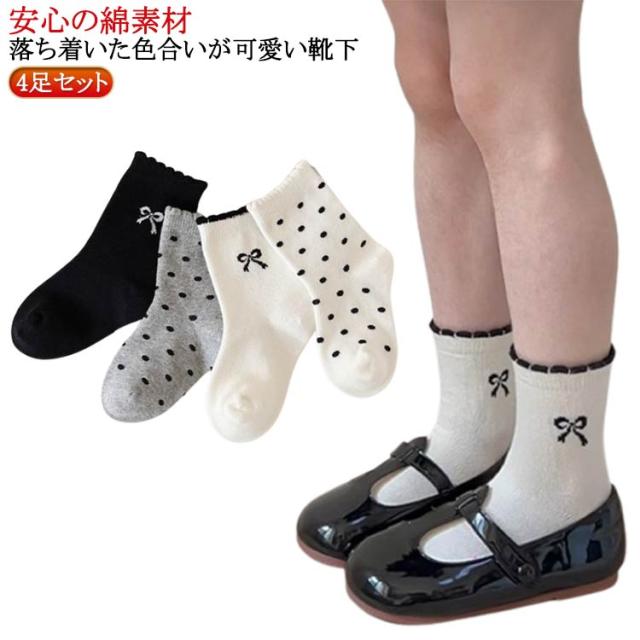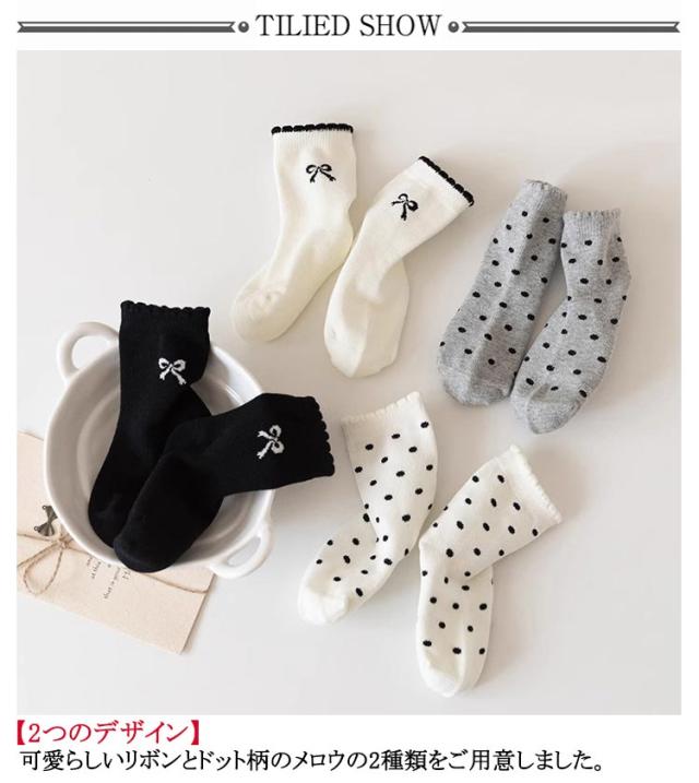 | 落ち着いた色合いが可愛い靴下 4足セット 【安心の綿素材】メイン素材は綿なので、お肌が敏感なお子様に安心して履かせられます。柔らかく通気性が良いので快適に過ごせます。 【履き心地の良い平編み素材】平編み素材なので、伸縮性があり、履かせやすく脱げにくいです。また、履き心地も抜群です。 【2つのデザイン】可愛らしいリボンとドット柄のメロウの2種類をご用意しました 【使いやすいデザイン】主張しずぎないけど一癖ある可愛いデザインで、コーデのワンポイントに!オールシーズン・デイリーで使えて、コーデをワンランクアップさせてくれます♪ | |