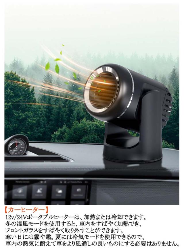 | 最新型 冬季の曇り止め/霜取り、涼しさの維持に適しています。 \ギフト おすすめ/ 【冷暖両用機能】この車載用ヒーターは快速加熱を支持します。デフロスターおよびデミスターとして使用できます。寒い冬には暖かい風を送っで、霧と霜を取り除き、ガラス凍結防止、視界が遮られにくいので、安心して安全に運転できます。夏には冷気モードを使用できるので、車内の熱気に耐えて車をより風通しの良いものにする必要はありません。 【10秒の急速加熱】車のヒーターには、急速な加熱または冷却効果を保証する強力な出力設計があります。10秒の高速加熱を保証します。寒い天候で待つ必要がなくなり、時間と油を節約できます。 【カーヒーター】12v/24Vポータブルヒーターは、加熱または冷却できます。冬の温風モードを使用すると、車内をすばやく加熱でき、フロントガラスをすばやく取り外すことができます。寒い日には霧や霜。夏には冷気モードを使用できるので、車内の熱気に耐えて車をより風通しの良いものにする必要はありません。 【角度調節 360°】気にならない静音設計で,従来品より音が小さくなります。軽量でコンパクトの設計により、空間を取らず、持ち運びと収納が便利です。狭い場所でもご利用いただけます。本体は360°回転可能で上下左右にお好みの角度で調整できます。本体は小さくて、運転の視線にも邪魔になりません、効果的に車内のスペースをセービングします。 【簡単な取り付け】車のヒーターを滑り止めマットに固定するか、両面テープを使用してから、車両のシガレットソケット(12V/24V)に差し込んで電源を入れるだけで、持ち運びが簡単です。 【幅広い用途】車、キャンプ、旅行、冬の暖かさに適しています。ポータブルカーヒーターは、家族や友人へのクリスマス、誕生日、お正月のプレゼントに最適です。あなたとあなたの家族に暖かく安全な旅を提供してください。 | |
