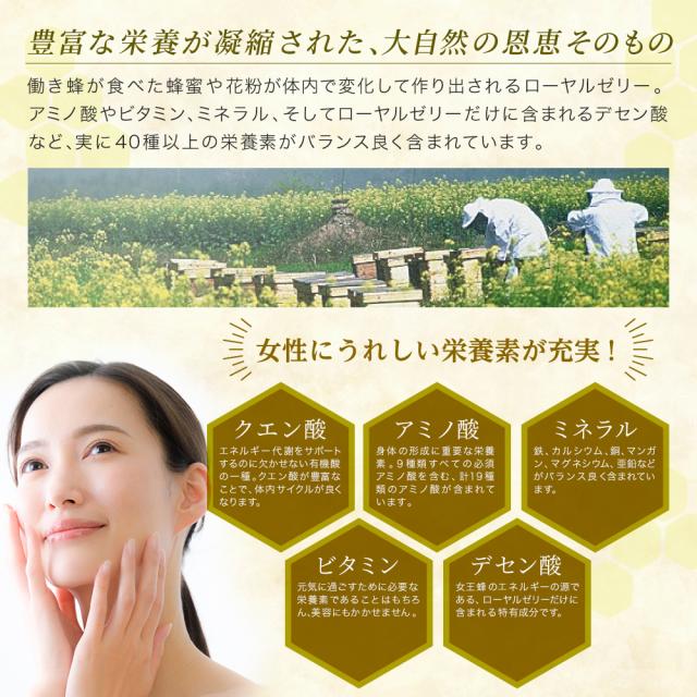 アミノ酸やビタミン、ミネラル、特有成分であるデセン酸など40種類以上の栄養成分を含む「ローヤルゼリー」。