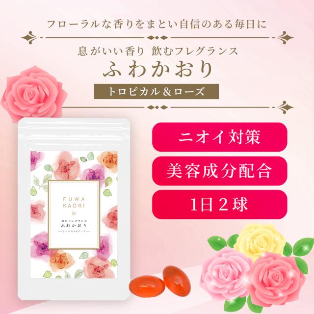 フレグランスサプリ ふわかおり 30日分 310mg×60球 飲む フレグランス 香水 サプリ 口臭ケア ダマスクローズ トロピカルフルーツ 茶カテキン 健康食品 サプリメント 送料無料