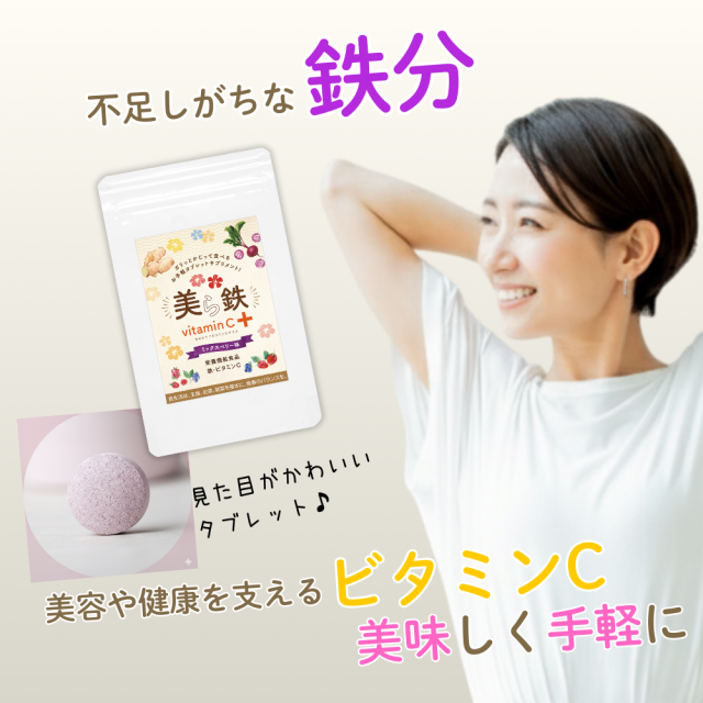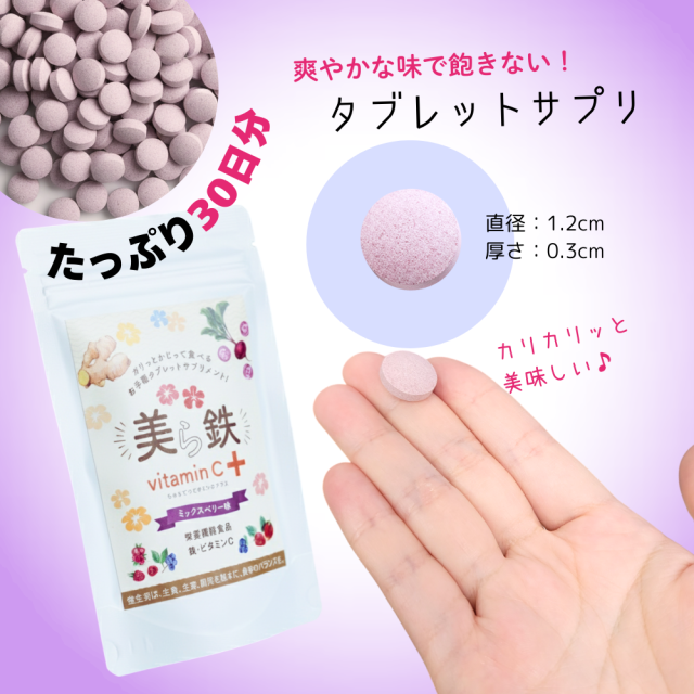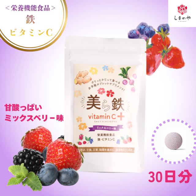 鉄分+ビタミンCサプリ 30日分 30粒 鉄分 ビタミンC 栄養機能食品 鉄 ビタミンC 鉄分不足 健康食品 美容 タブレット お手軽 美ら鉄ビタミンC+ しまのや 送料無料