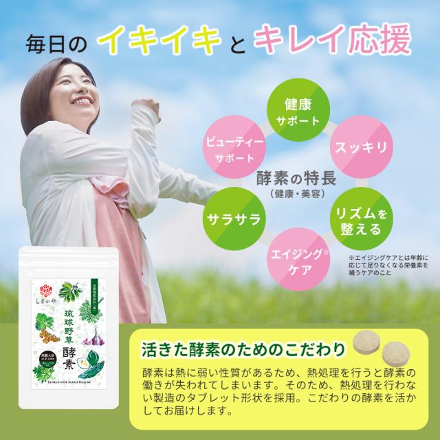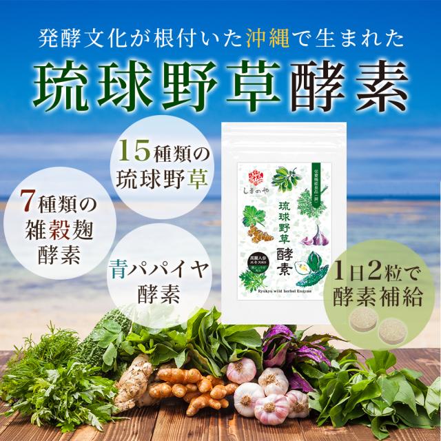 酵素サプリメント 30日分 300mg×60粒 琉球野草 生きた酵素 乳酸菌 食物繊維 栄養機能食品 銅 健康食品 サプリメント 琉球野草酵素 しまのや 送料無料