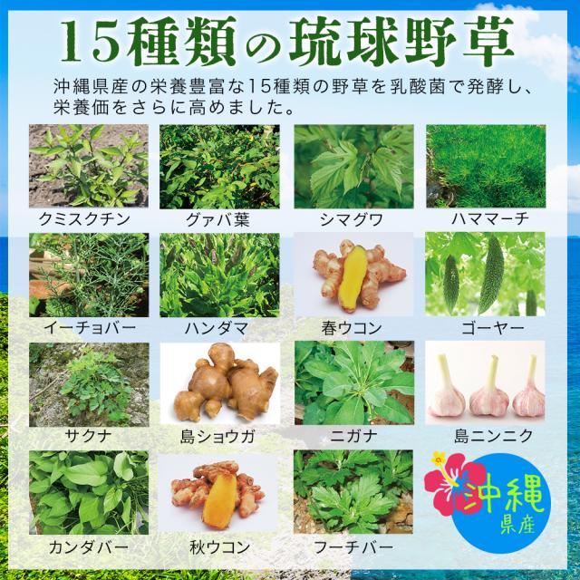 15種類の琉球野草と7種類の雑穀麹酵素、青パパイヤ酵素