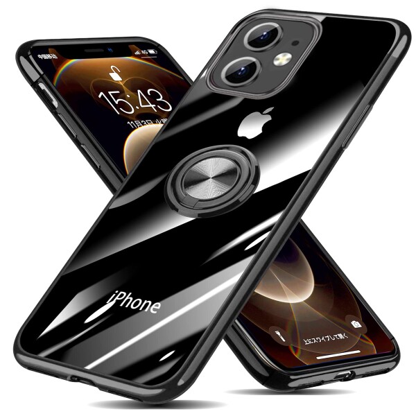 iPhone 12 Mini 用 ケース リング付き クリア 透明 TPU 耐衝撃 車載ホルダー対応 スタンド機能 防塵 薄型 軽量 落下防止 一体型 変形防止 全面保護カバー アイフォン 12 Mini ケース 黒 MJJ-1039-11-1