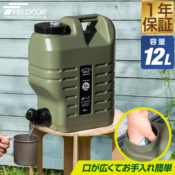 FIELDOOR ウォータータンク 12L 蛇口つき コック付き ハードタイプ ウォータージャグ 飲料水 タンク キャンプ アウトドア用品 給水タンク 給水用品 ウォーターボトル ポリタンク 防災グッズ 災害 非常用 地震 台風 停電 断水 1年保証 送料無料