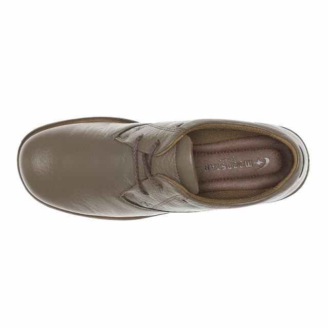 「ムーンスター スポルス」の履き心地にこだわったレディースコンフォートシューズです。丁寧な加工で仕上げた日本製ならではの履き心地です。甲部分は足にやさしいガーメントレザー(天然皮革)を使用し履くほどに足に柔らかくフィットします。中底はシフォンケーキのようなふっくら柔らかい素材をプラスしクッション感にこだわった機能「シフォンリラックス」を採用。ヒールの高さは3.0cmで、重量は23.0cmで片足約210gの軽量設計です。【シフォンリラックス】中底に「ZFフォーム」という反発力と衝撃吸収性を持ち合わせた素材を使用しています。衝撃吸収性が従来素材に比べ約3倍になっているので足の負担を軽減します。【足なり設計】足の特性に合わせて足裏にフィットするため、負担がかかりにくい設計です。【ベステック(R)ソール】ウレタンの劣化しやすい弱点を大きく改善した素材で、軽量性、弾力性、防滑性に富んだソールです。【ガーメントレザー】天然皮革で柔軟性を持たせるため揉み加工を施したソフトレザーです。衣料用としても使用される革で、柔軟性はそのままに靴用として強度をもたせ仕上げています。【撥水加工】
