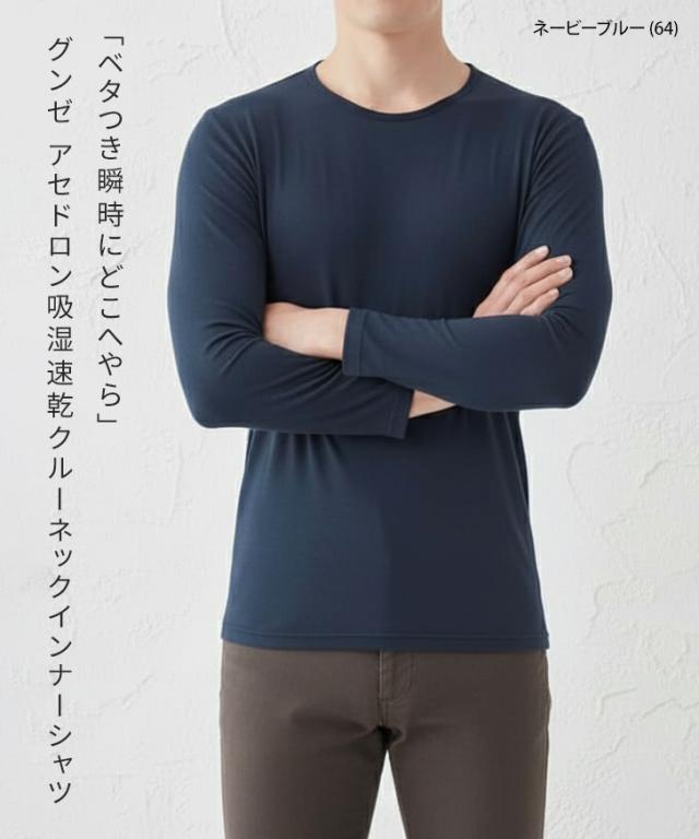 ●GUNZEアセドロン吸湿速乾クルーネック長袖 インナーシャツ
