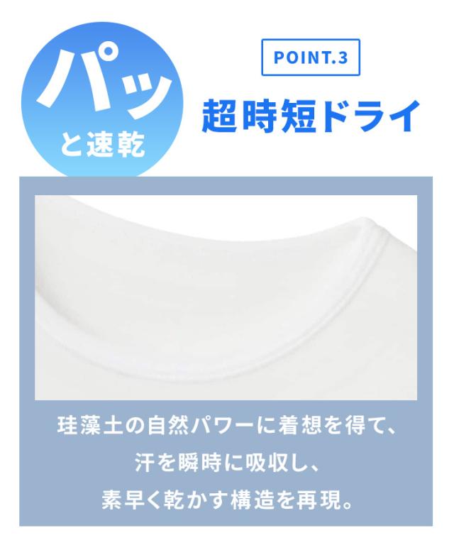 珪藻土の自然パワーに着想を得て、汗を瞬時に吸収し、素早く乾かす構造を再現。