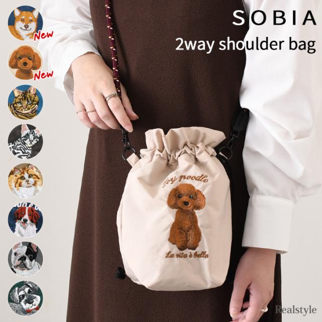 新作 SOBIA ソビア ショルダーバッグ レディース 軽い 斜めがけ アニマル刺繍 2way コード 巾着ショルダー 小さめ マチ付き 巾着 おしゃれ かわいい