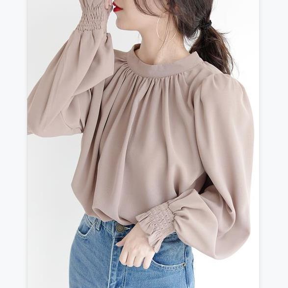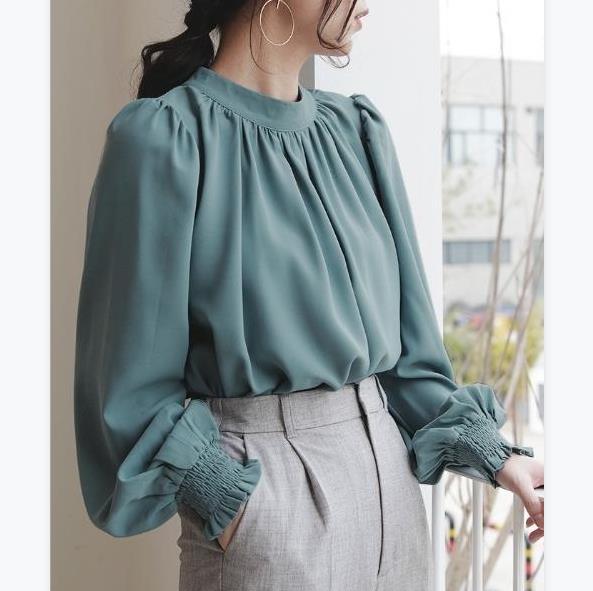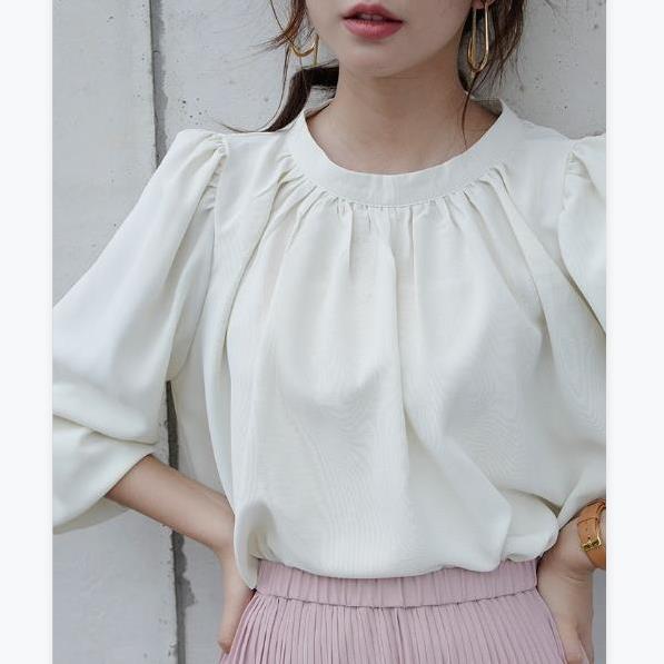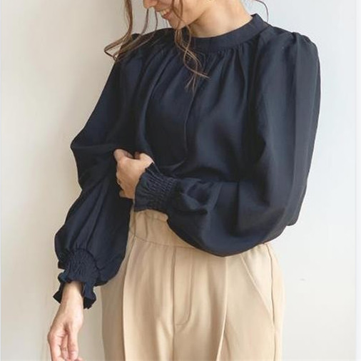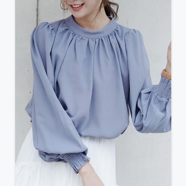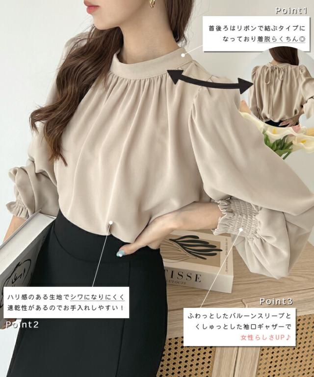 ブラウス 長袖 レディース トップス シャツ ハイネック バルーン袖 カジュアル フォーマル オフィス きれいめ 結婚式 入学式 卒業式 上品