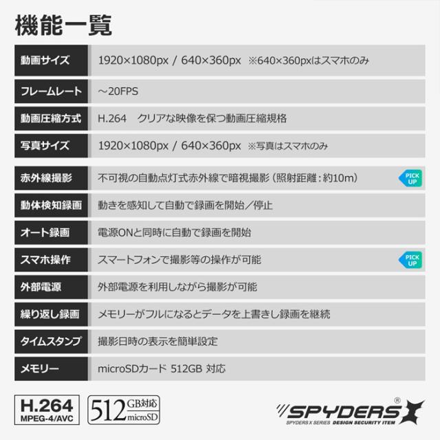 【小型カメラ】【防犯カメラ】【スパイカメラ】【オンスクエア】【スパイダーズX】