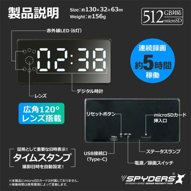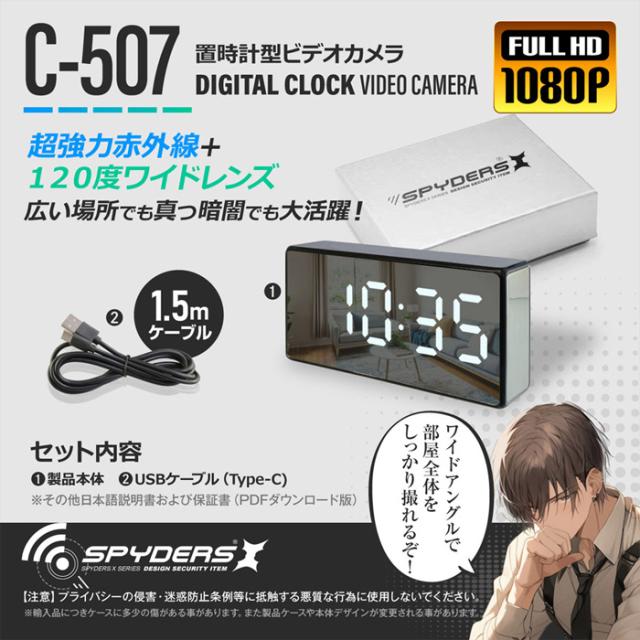 C-507 フルHD 置時計型カメラ 防犯カメラ小型カメラ スパイカメラオンスクエア スパイダーズX