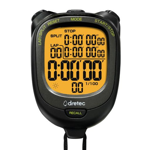 ドリテック(DRETEC) 防水(IPX7)&バックライト付ストップウォッチ 0.01秒単位で計測 ラップ/スプリット機能 勉強 スポーツ 100メモリー カウント タイマー アラーム 大画面 電池交換可 ブラック …