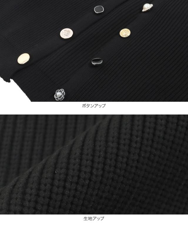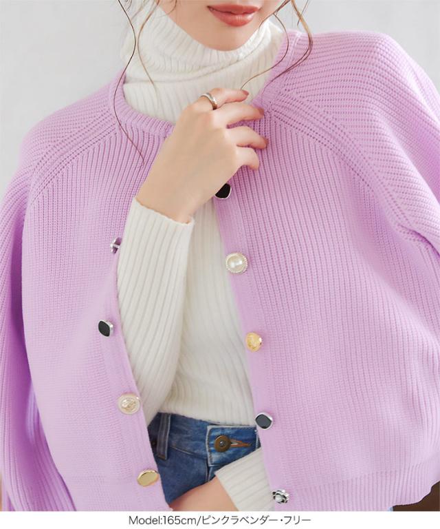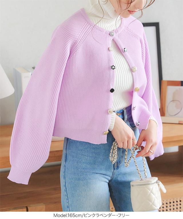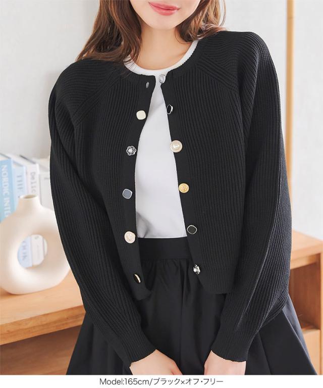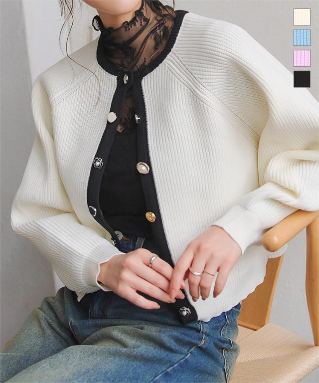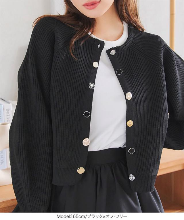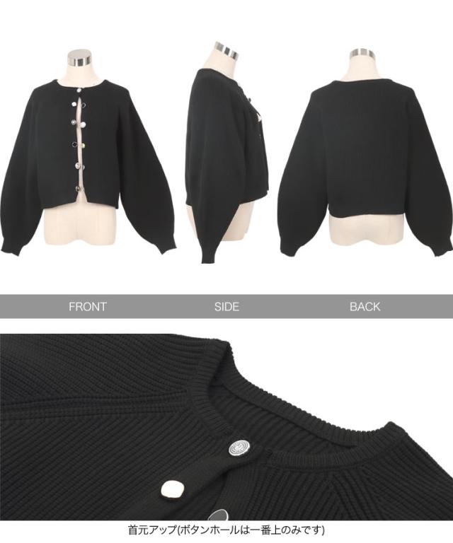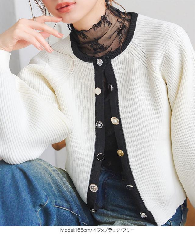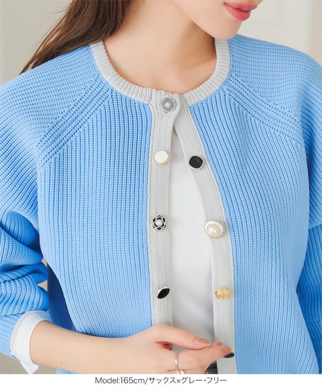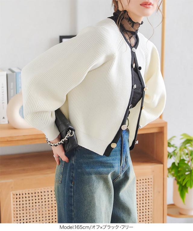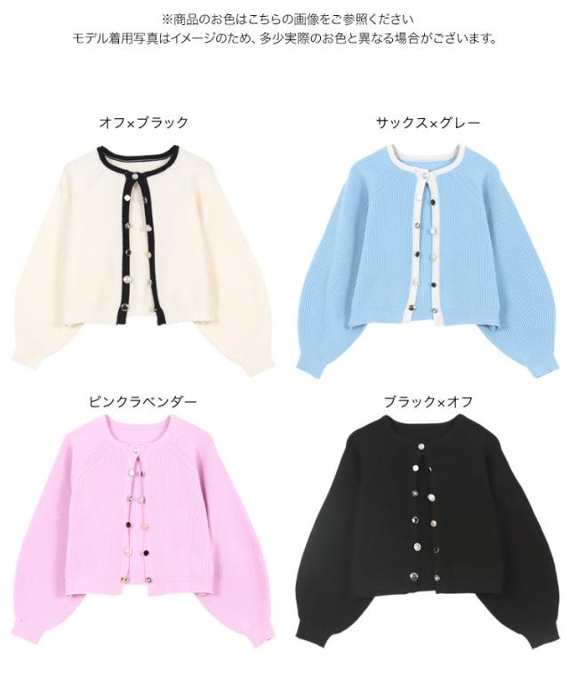 多ボタンニットカーディガン N1161 入荷済 レディース 20代 30代 40代 ニット セーター カーディガン カーデ ジャケット ビジュー ボタン バイカラー 配色 ボリュームスリーブ 長袖