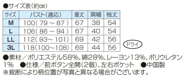 ●仕様/前ボタン全開(2個)、左右ポケット