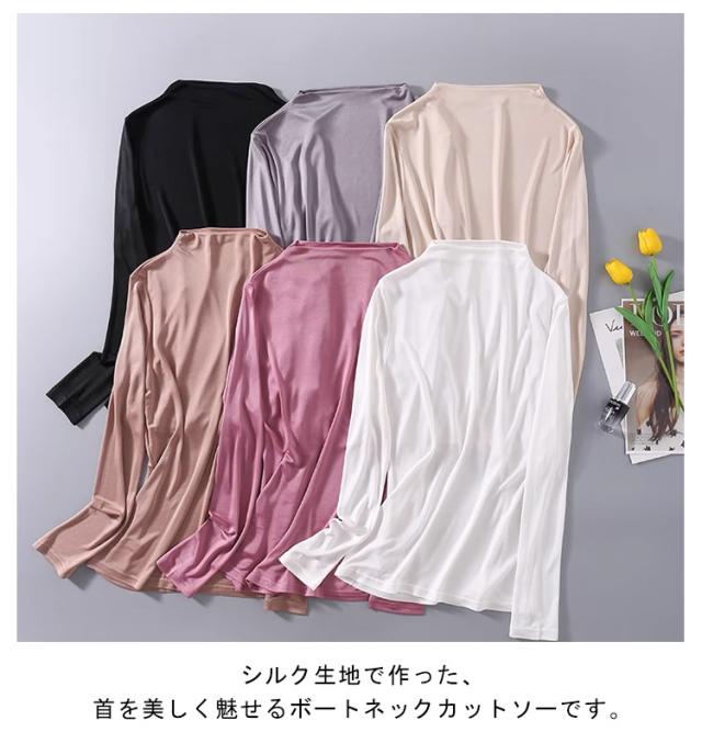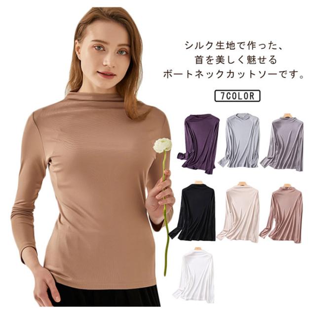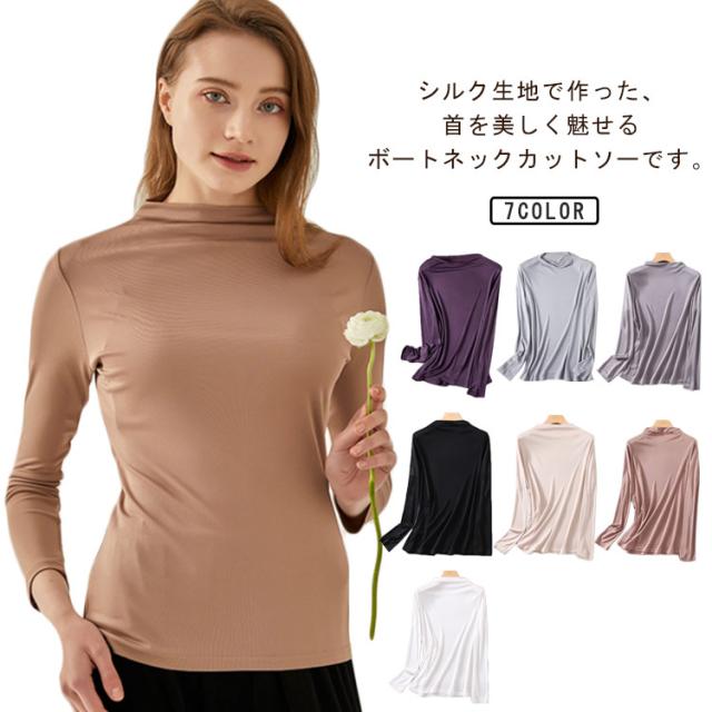 カットソー レディース ボートネック 長袖 Tシャツ ロンT 重ね着 インナー 肌着 無地 保湿 保温 冷え対策 伸縮性 プレゼント オールシーズン 送料無料