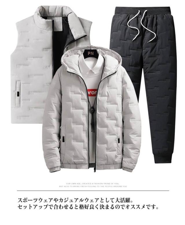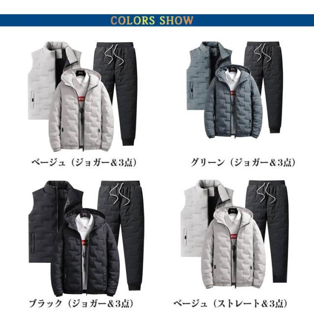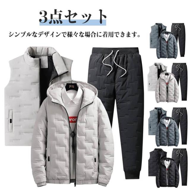 中綿 秋 カジュアル メンズ 中綿パンツ 中綿ジャケット 上下セット キルティング 3点セット 中綿ベスト キルト 厚手 キルティング 暖かい 無地 防寒着 カジュアル おしゃれ あたっか 部屋着 スポーツウェア 大きいサイズ ダウン風 冬 アウトドア バイク 通勤通学