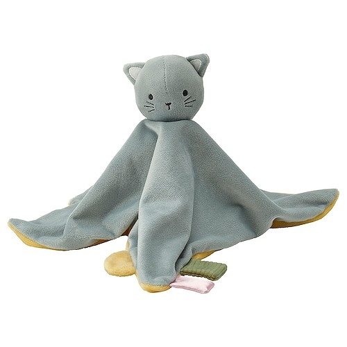 IKEA イケア ブランケット ソフトトイ付き ブルー イエロー ネコ m00573659 GULDVAVARE グルドヴァヴェレ