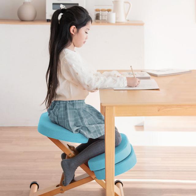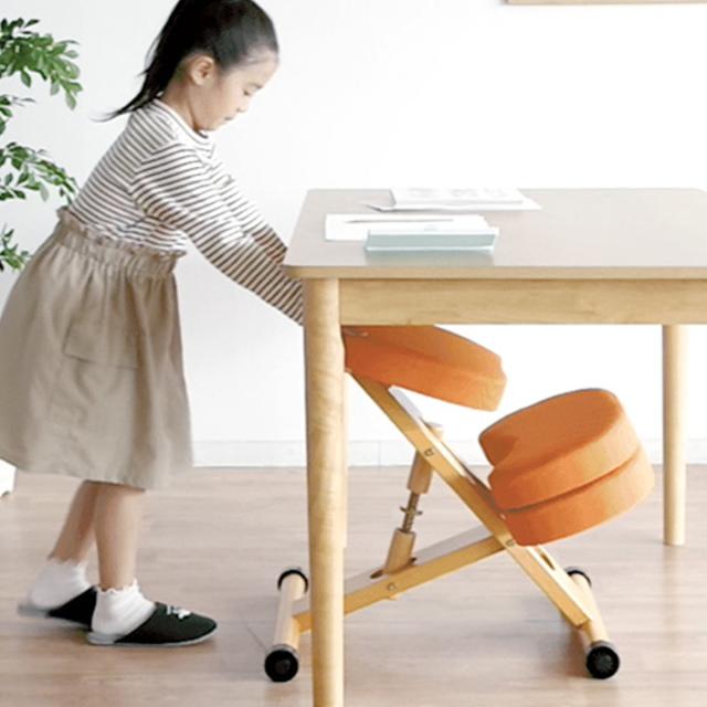 斜めの座面が立ち姿勢のように骨盤が立つので自然と背中がS字カーブを描き、理想的な姿勢を作り出せるプロポーションチェア。正しい姿勢で座ることで集中力がアップすると言われています。