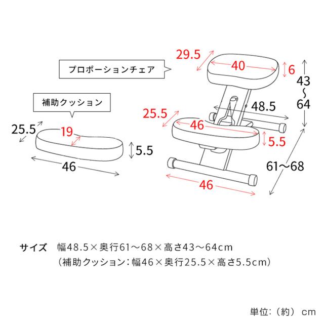 | サイズ | 約 幅48.5×奥行61〜68×高さ43〜64(cm) 補助クッション:幅46×奥行25.5×高さ5.5(cm) |