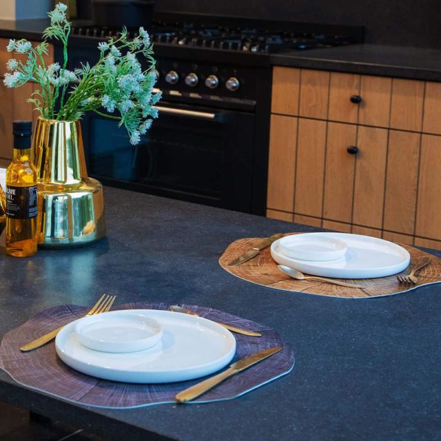 木の幹をイメージしたナチュラルカラーのプレイスマット。食卓だけでなく、飾り棚や玄関など、使い方もいろいろ。ハーブや木の実などと組み合わせてユニークなコーディネイトを楽しんでいただけます。