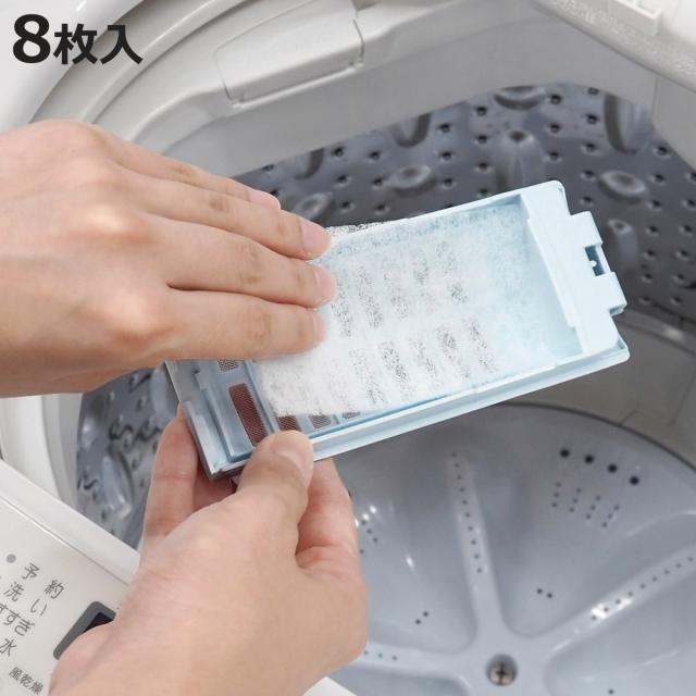 8枚入りで、お使いの洗濯機の糸くずフィルターケースに合わせてカットできます。