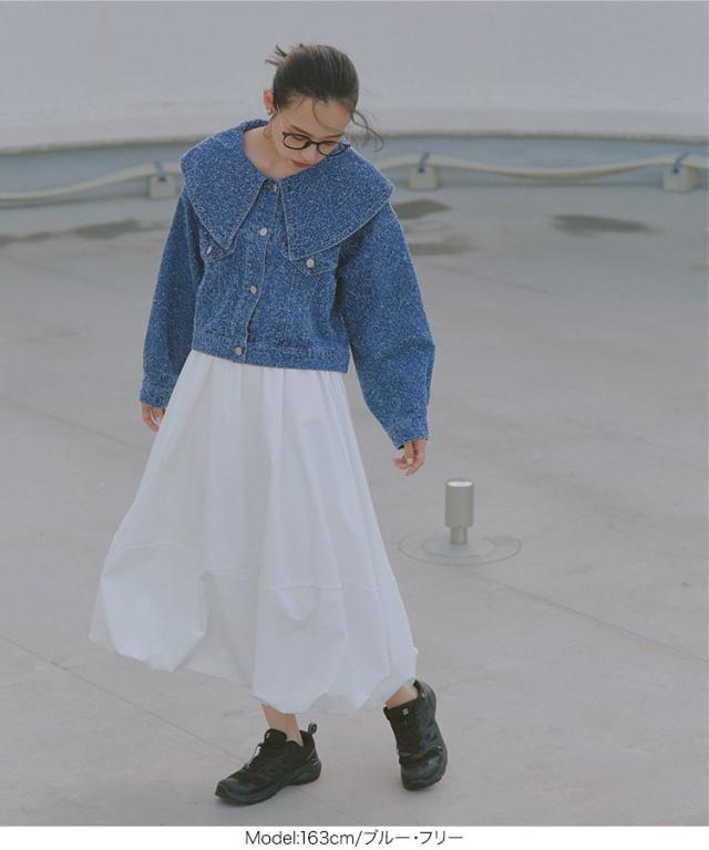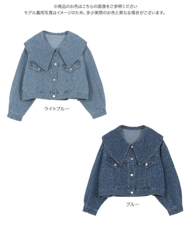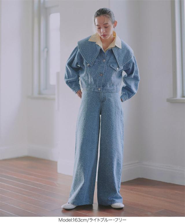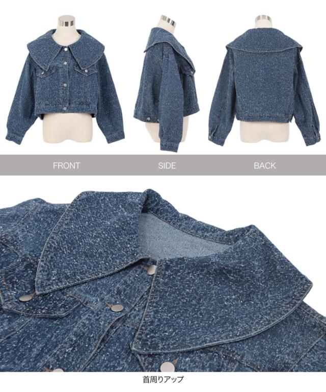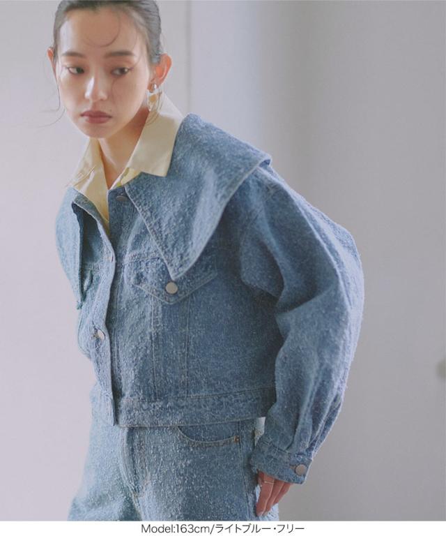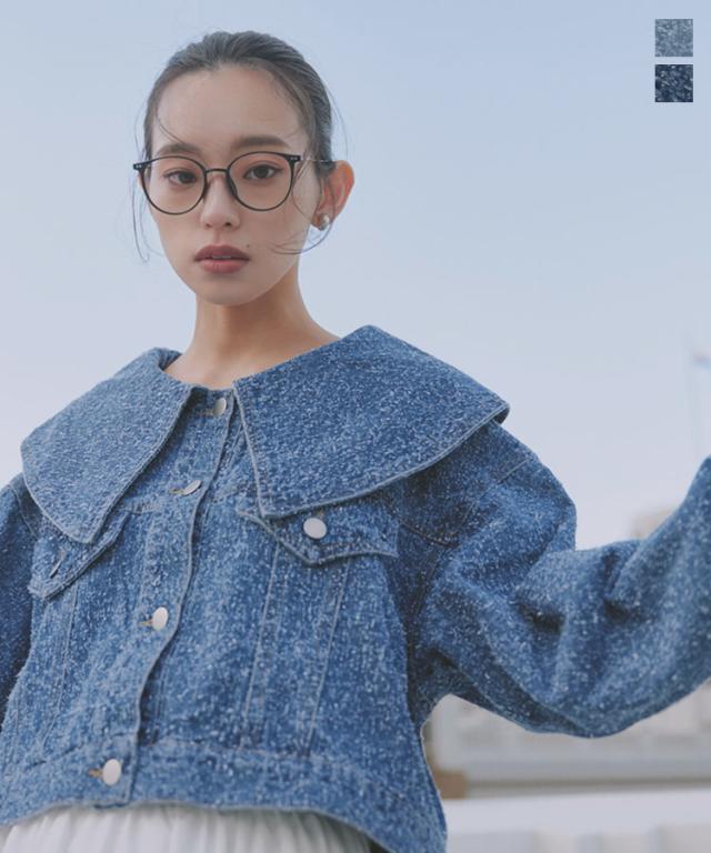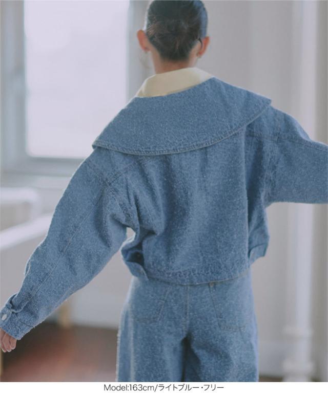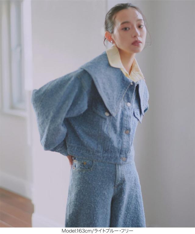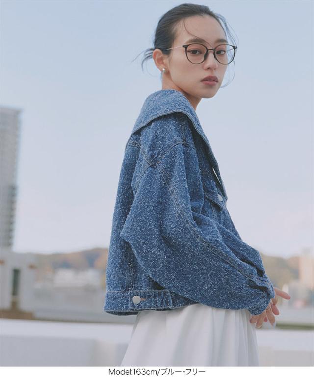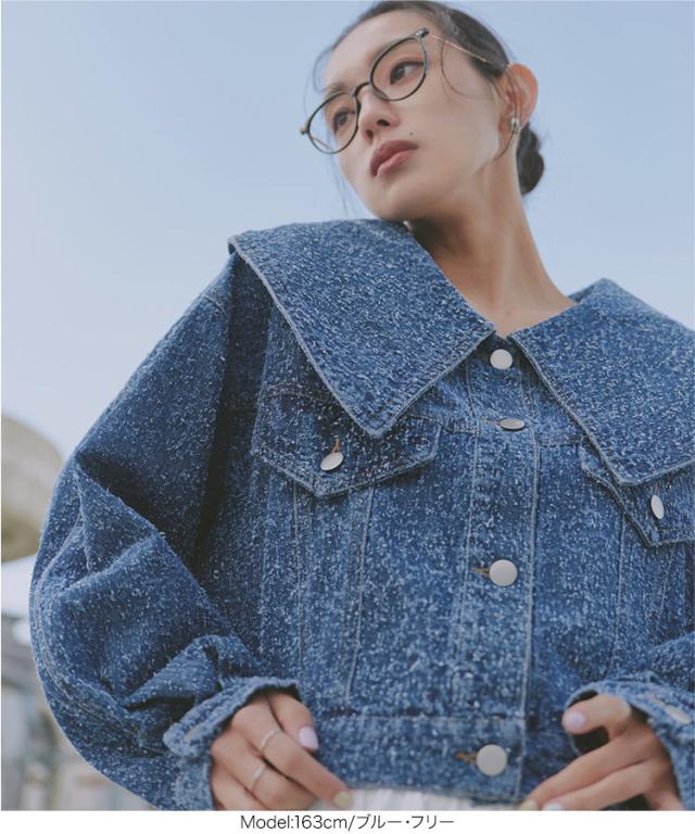 ビッグカラーツイードデニムジャケット K1360 入荷済 レディース 20代 30代 40代 アウター ジャケット 長袖 デニム ツイード スクラッチデニム ジージャン デニムジャケット 襟付きジージャン 襟付きデニムジャケット ビッグ襟 デカ襟