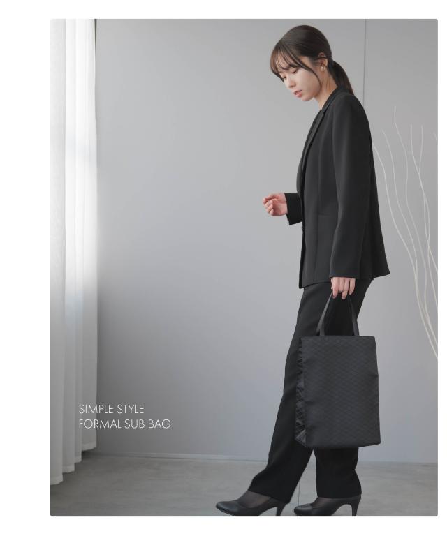 折りたたみ可能な底板付きのサブバッグ。 A4サイズがすっぽり収まるサイズです。 お葬式に限らず、法事・法要・お墓参り・入学式・卒業式など様々なフォーマルシーンでご使用いただけます。 ふくさ・念珠・ハンカチ・スマートフォン・財布・リップ・ハンドクリームなど、必要なものを入れても余裕のあるサイズ感。 雨の日に安心な撥水加工を施した、国産のジャガード織を使用。 内側にポケット付き。 スマホなどが収納できます。 軽量仕様なので、荷物の多い場面でも使いやすい。 持ち手の高さ:13cm (外寸)幅:24cm / 奥行:11cm / 高さ:32cm 生産国:日本 |