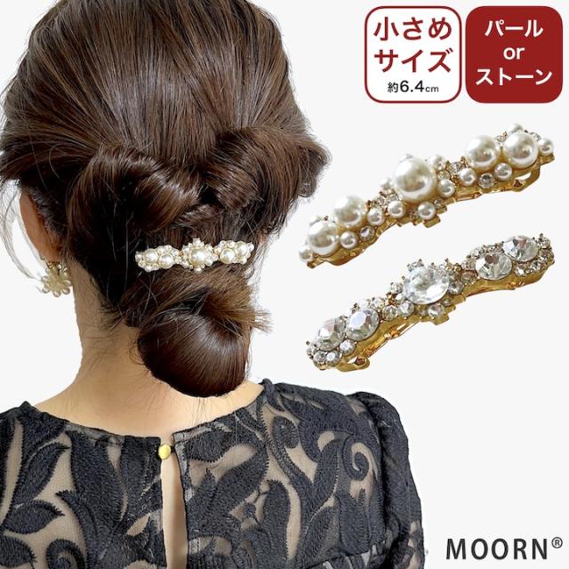 バレッタ パール ストーン 小さめ ゴールド ミニバレッタ ミニ 小さい ヘアクリップ ヘアアクセサリー レディース シンプル キラキラ ミニクリップ 韓国 おしゃれ 結婚式 ゲスト お呼ばれ 入学式 パーティー 謝恩会 髪飾り MOORN モーン