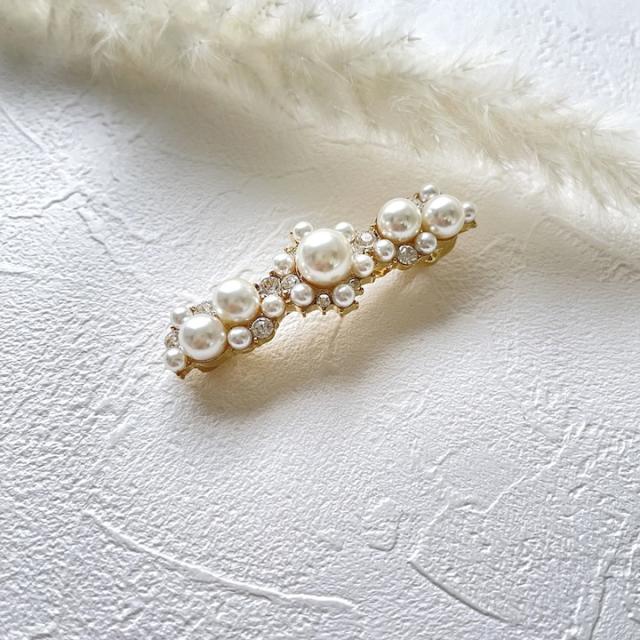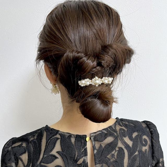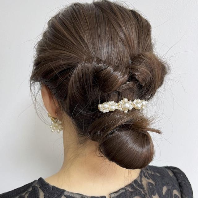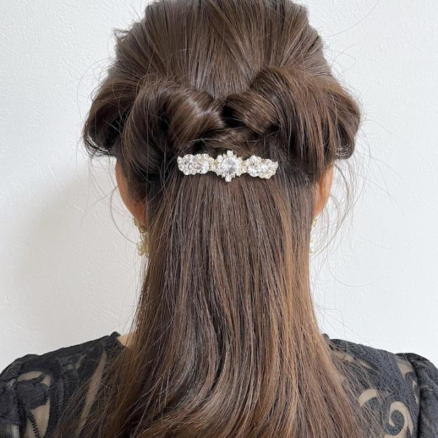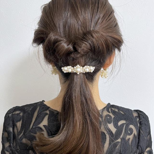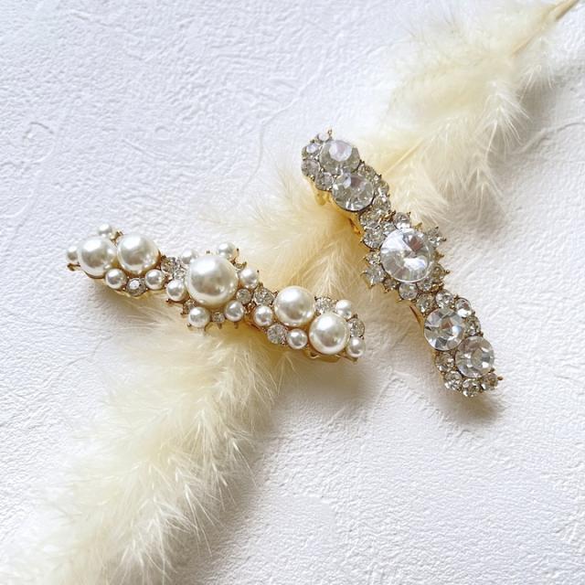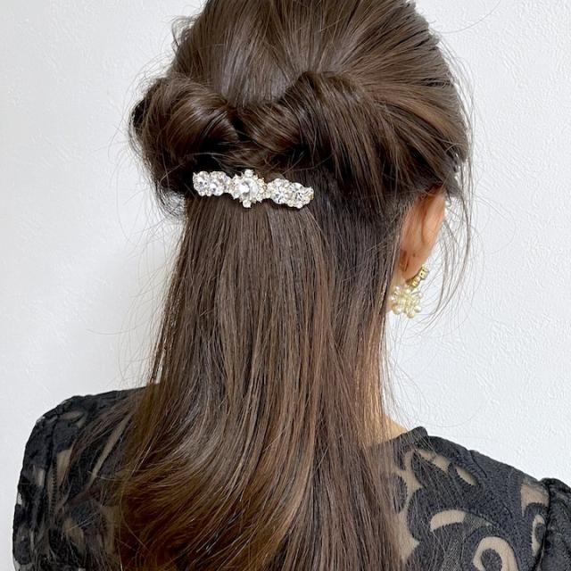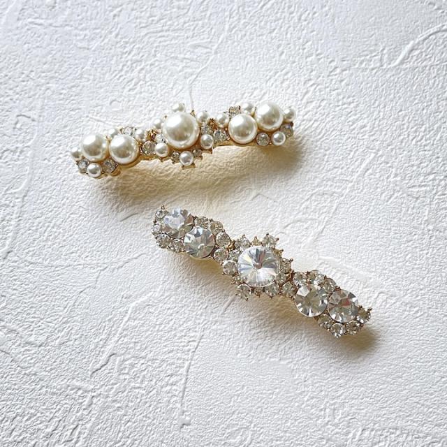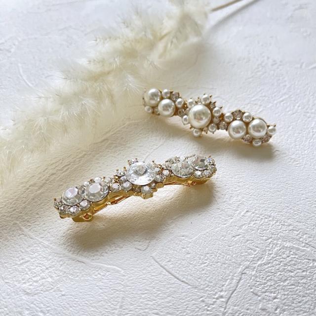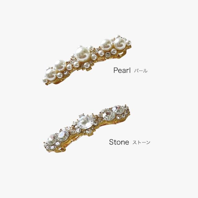 上品な小さめのサイズのバレッタ。パールタイプとストーンタイプからお好みでお選びいただけます。