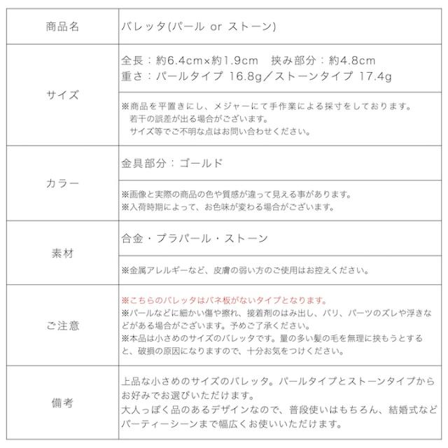【商品名】バレッタ(パール or ストーン)