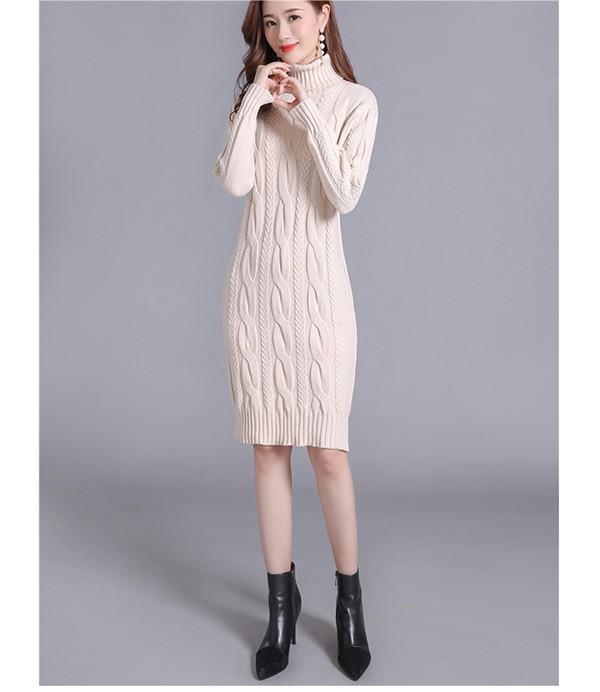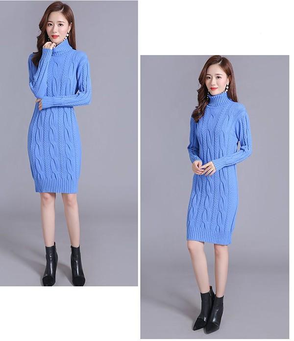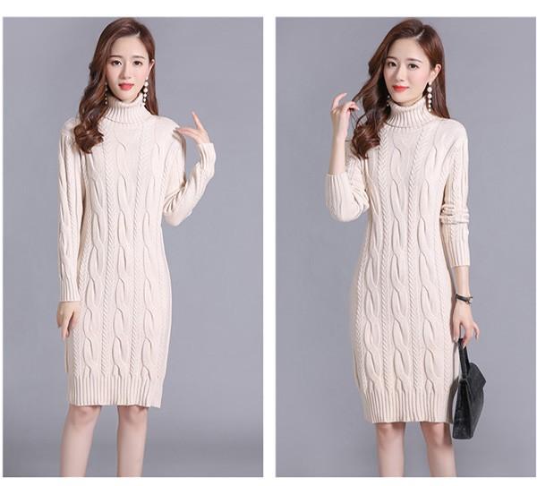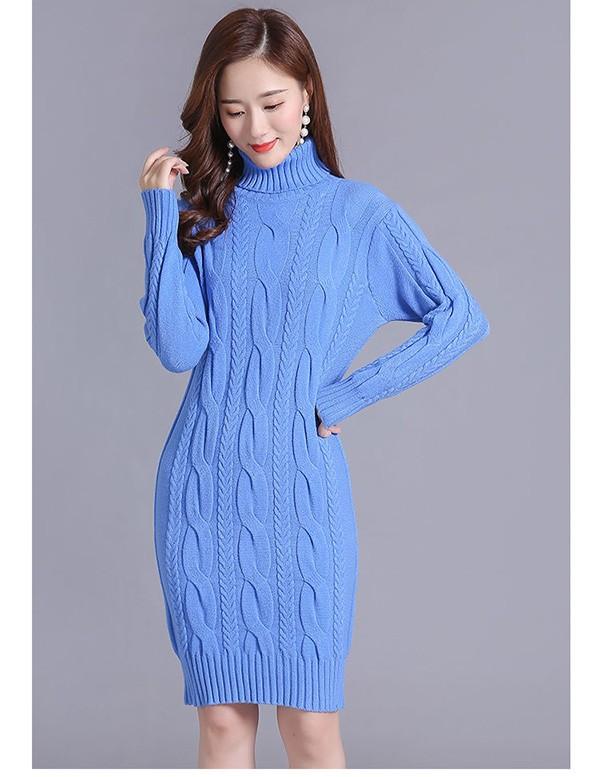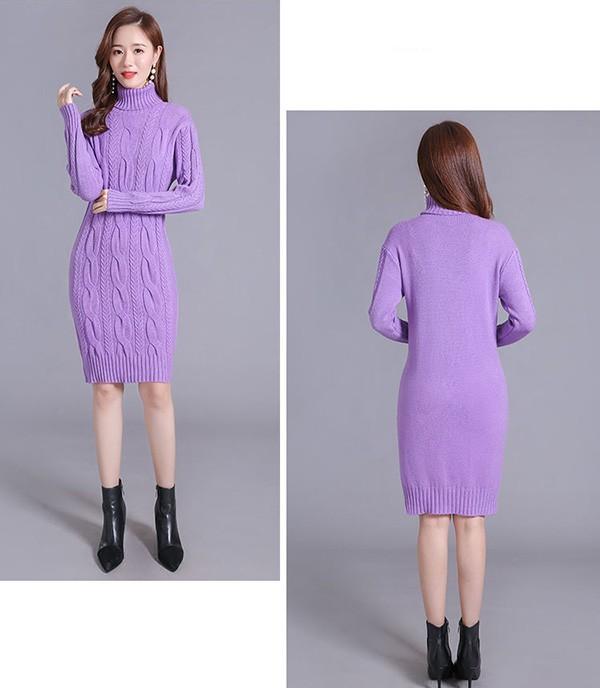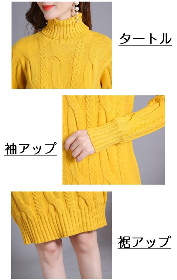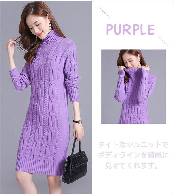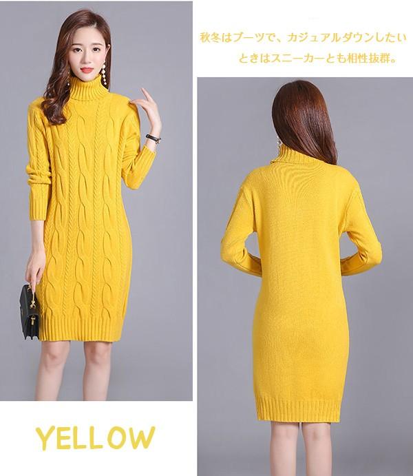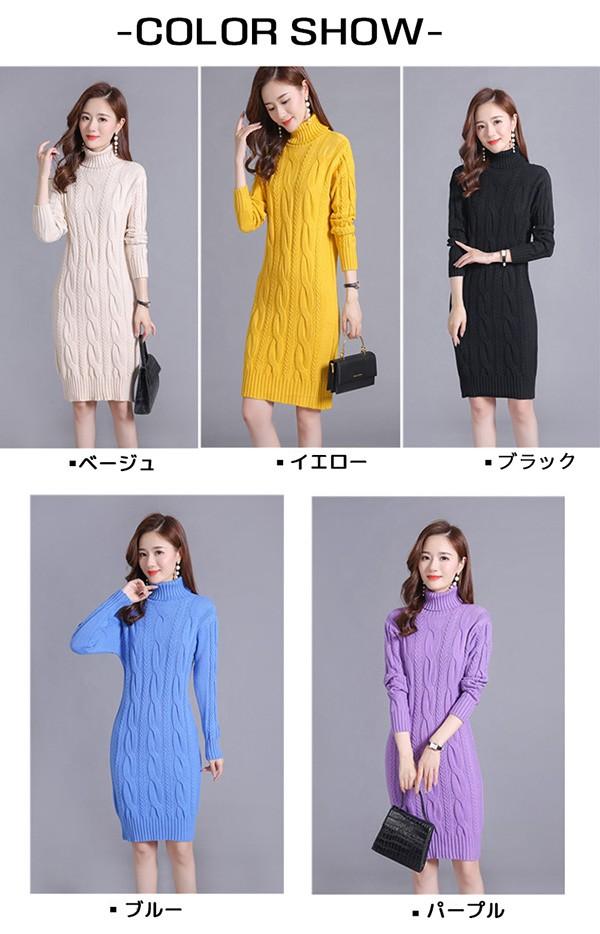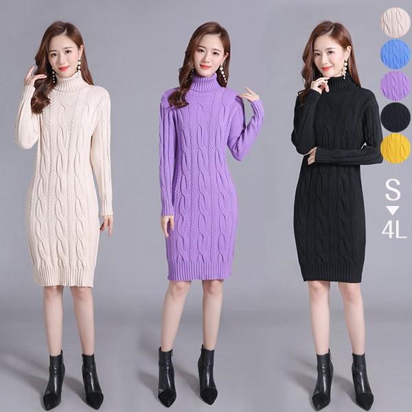 ニットワンピース 秋冬 オシャレ ひざ丈 ミディアム ケーブル ワンピ 長袖 ワンピース ニット 体型カバー ハイネック 大人 上品 30代 50代 黒 紫 黄色 水色 S M L 2L 3L bs059s1s1m5
