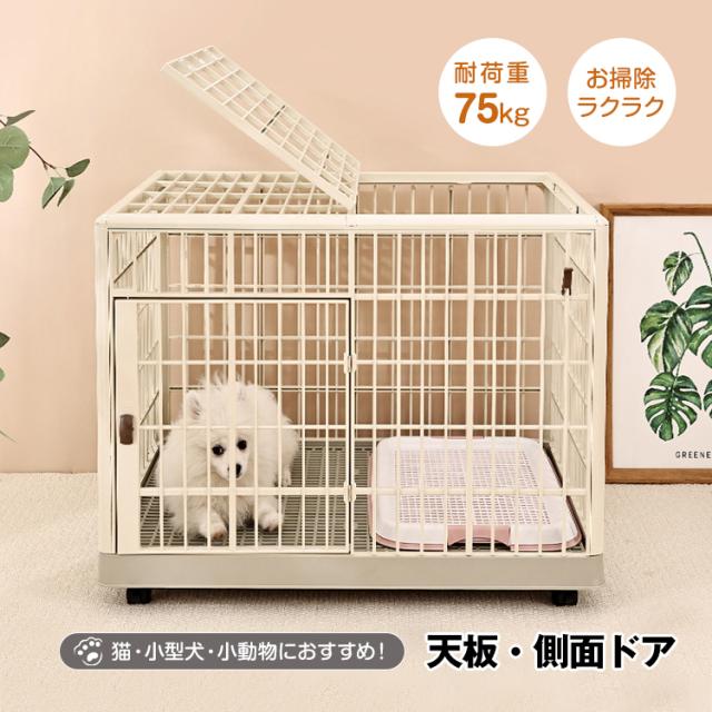 ペットケージ 犬 猫 小動物 ケージ ゲージ ペットサークル 耐荷重75kg 天板 天面 側面 ドア 2ドア ダブルドア 丸洗いOK 小型犬 四輪 360° キャスター 軽量 頑丈 プラスチック 安全素材 おしゃれ うさぎ 犬小屋 pt096-s