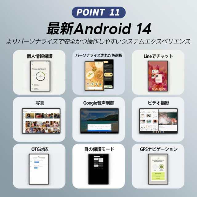 新品 タブレット PC 本体 Android14 大画面 10.1インチ 8GB+256GB テレワーク 2560*1600 ネット授業 子供向け 動画視聴 Bluetooth GPS 電話 WiFi 人気 ギフトOS:Android 14